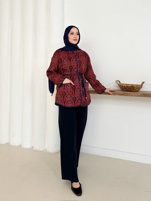 Stay warm and effortlessly stylish with this elegant bohemian-style quilted jacket. Designed with full front buttons and a removable belt that highlights your waist beautifully.