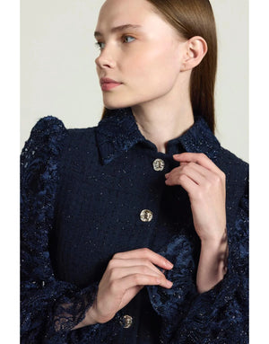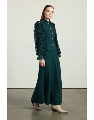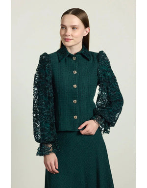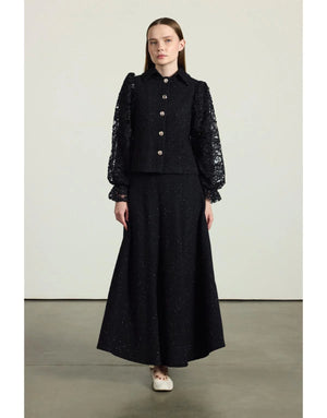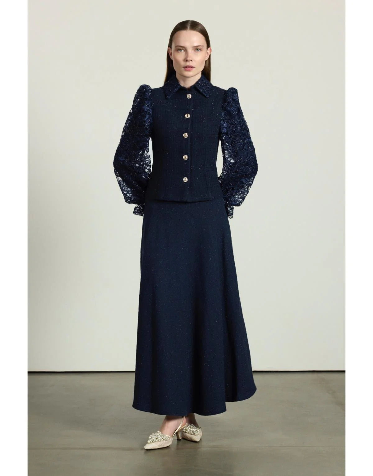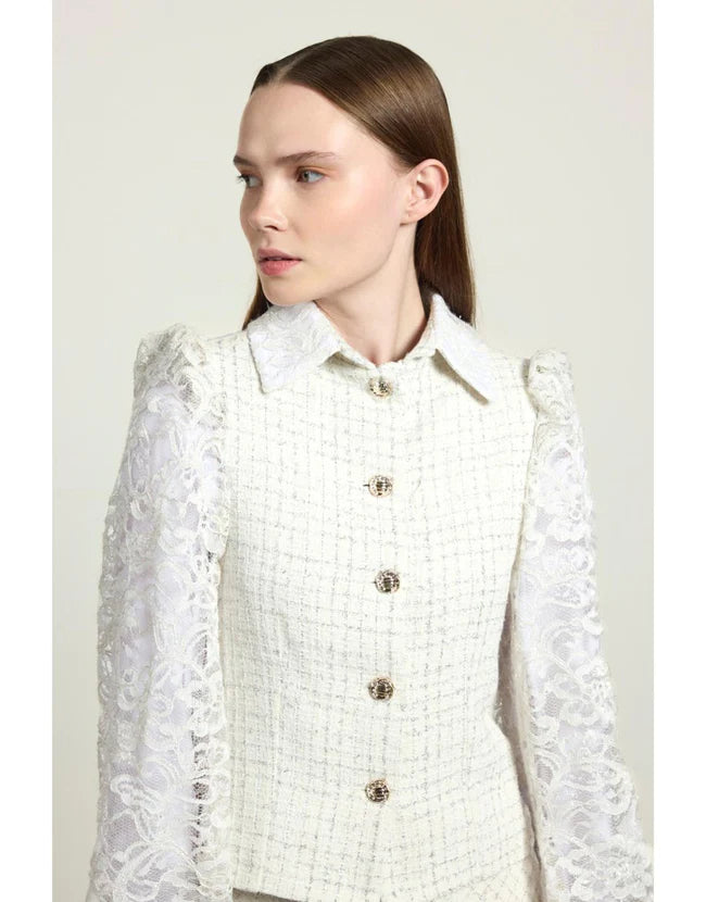 A stylish two-piece set consisting of a button-down, belted shirt and a matching skirt. Lace details add a refined feminine touch, while the belted design enhances the waistline. Perfect for daily wear and elegant casual occasions.