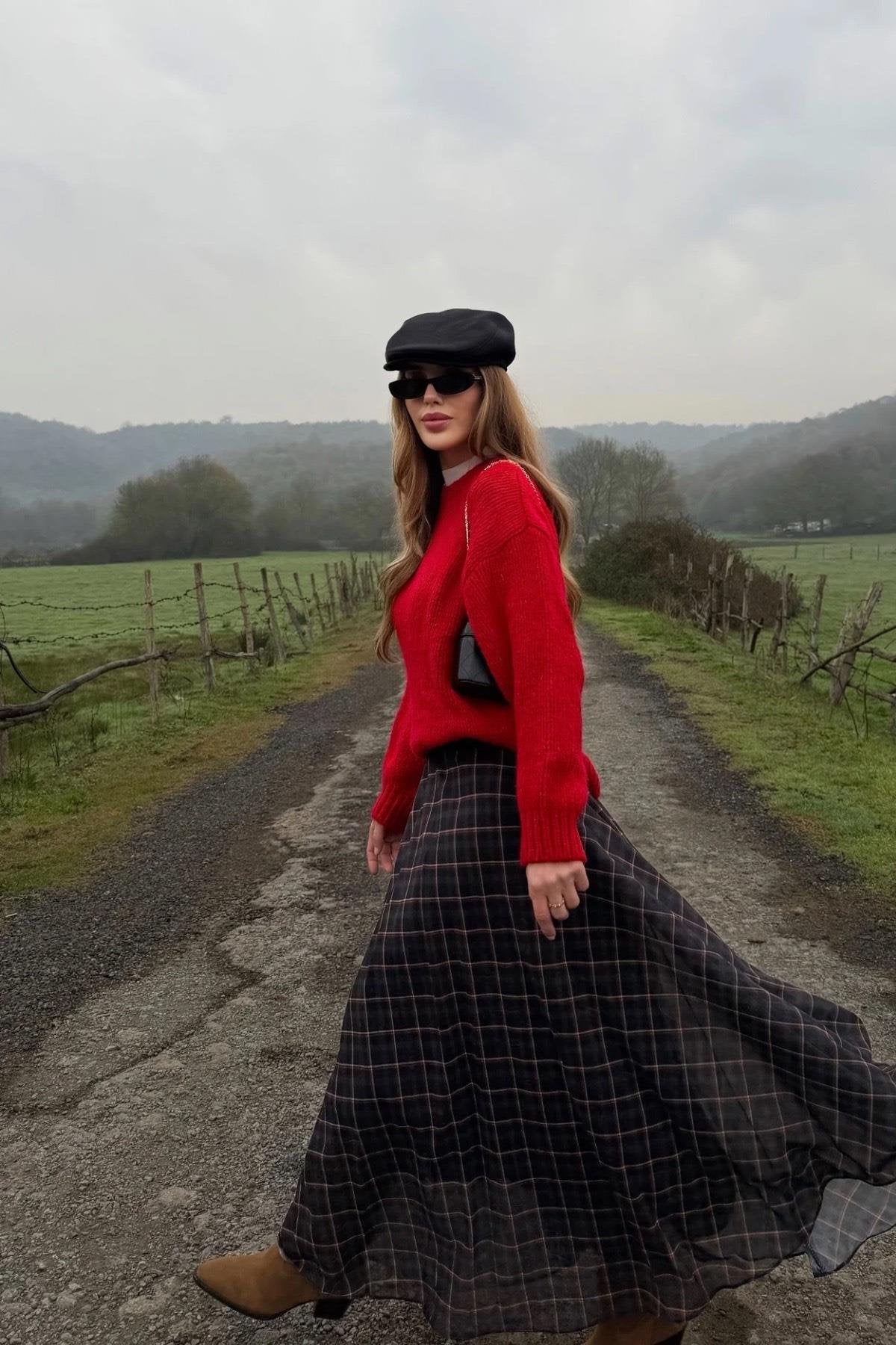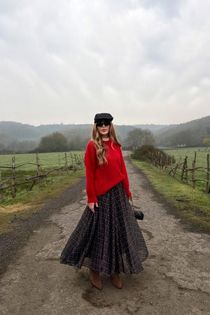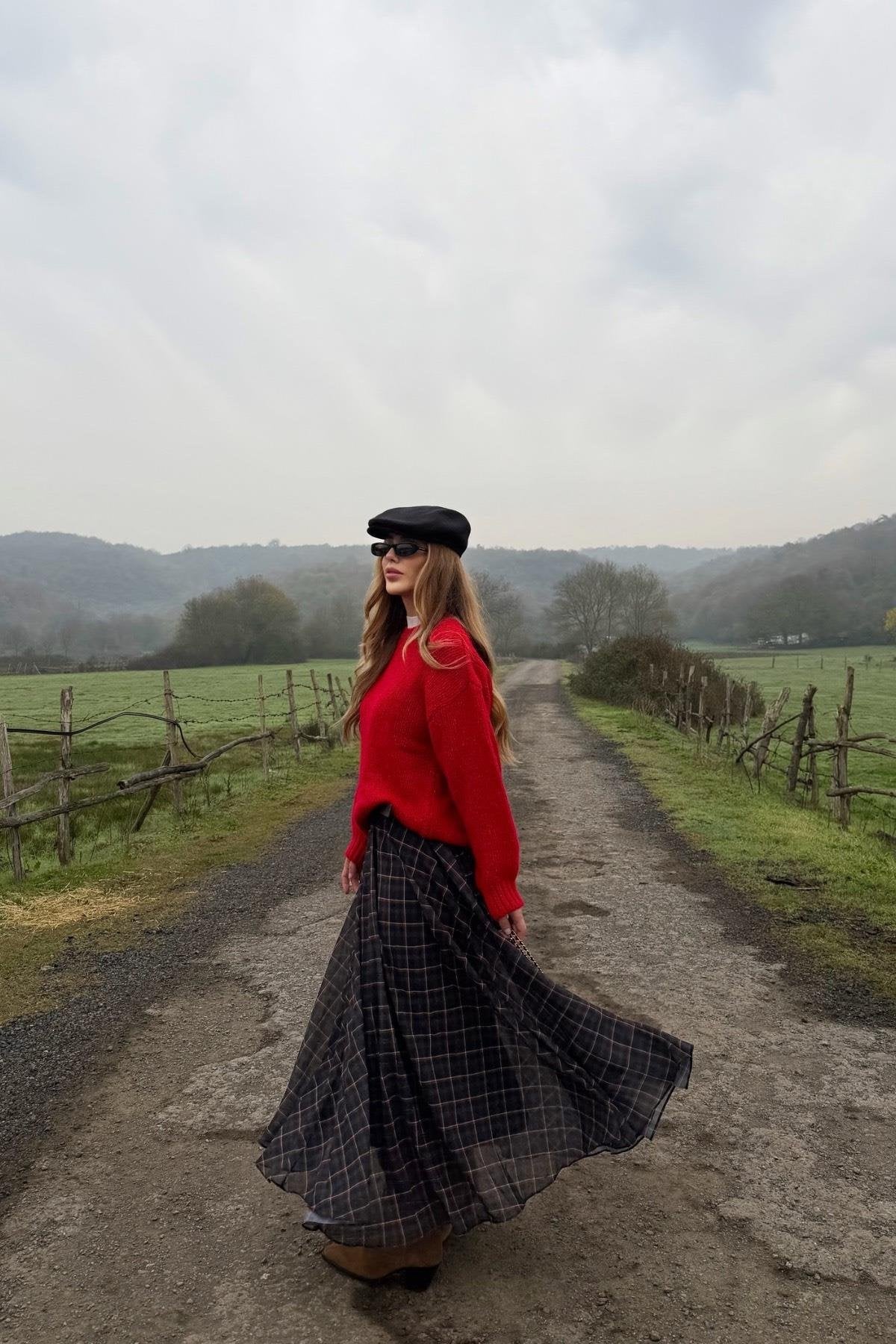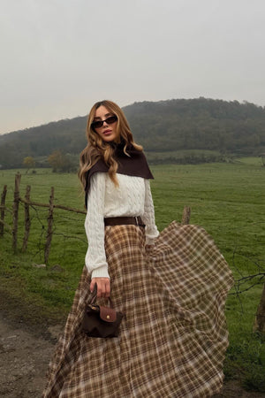 A lightweight chiffon skirt featuring a classic checkered pattern, offering a feminine and elegant look. Easy to style for everyday wear and modern outfits with a soft, flowy fabric.