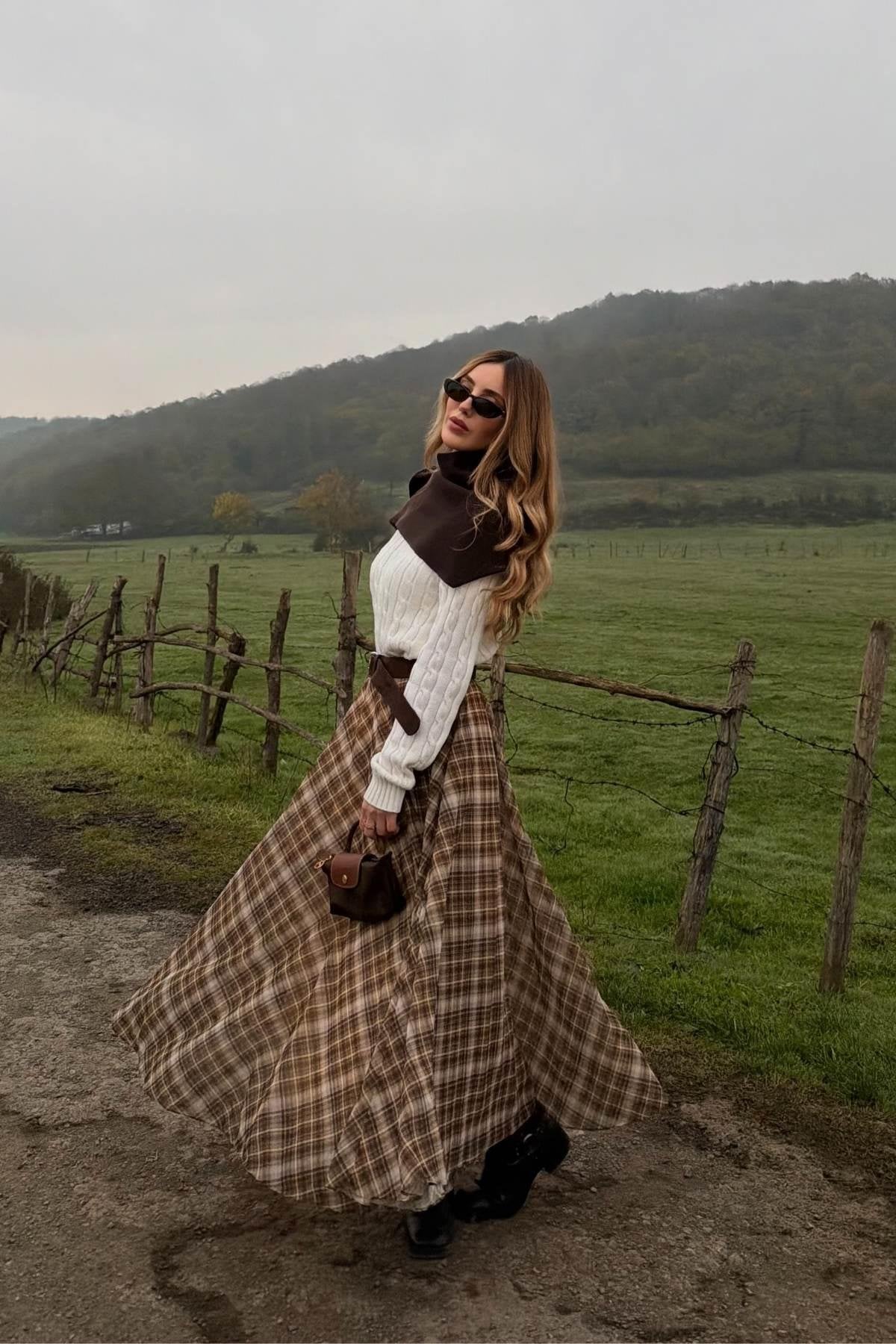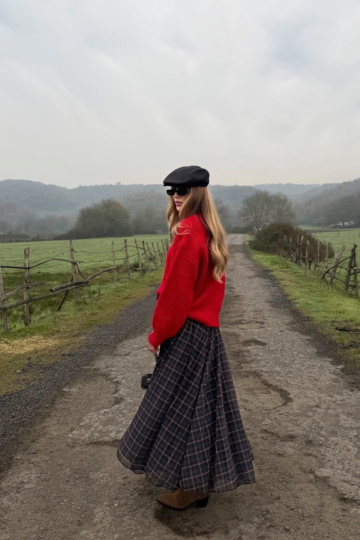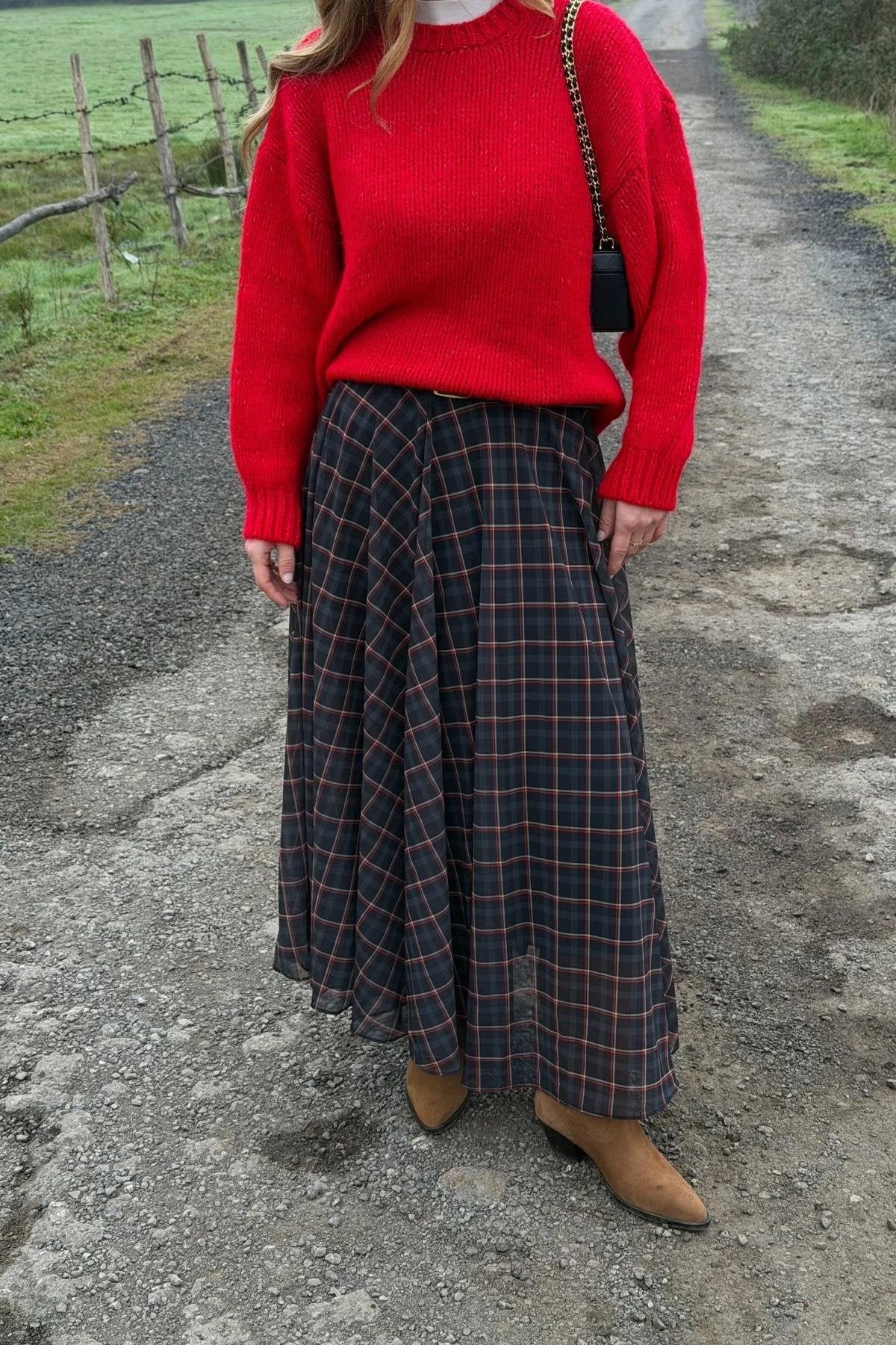 A lightweight chiffon skirt featuring a classic checkered pattern, offering a feminine and elegant look. Easy to style for everyday wear and modern outfits with a soft, flowy fabric.