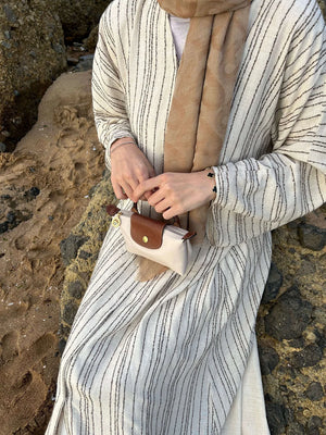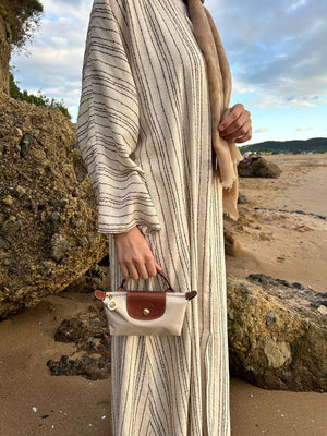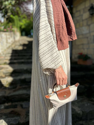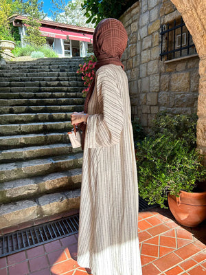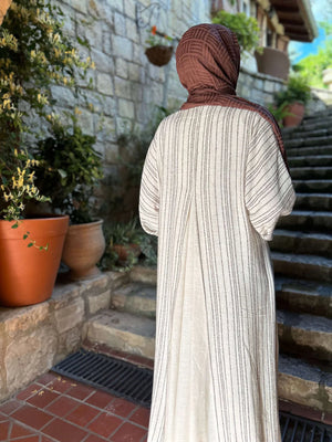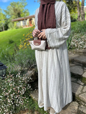 This Cream Linen-Viscose Abaya combines effortless elegance and comfort.