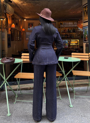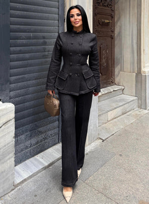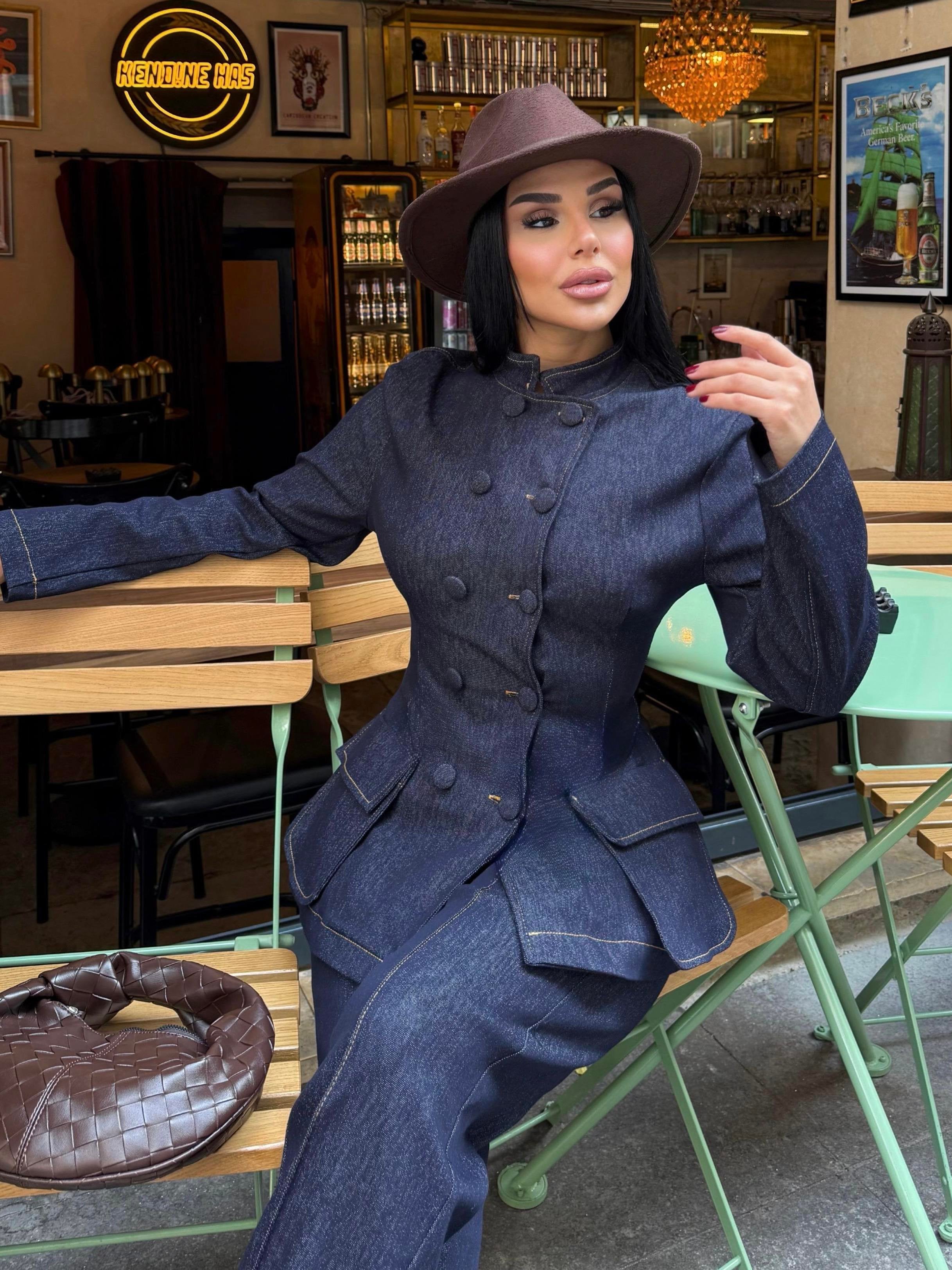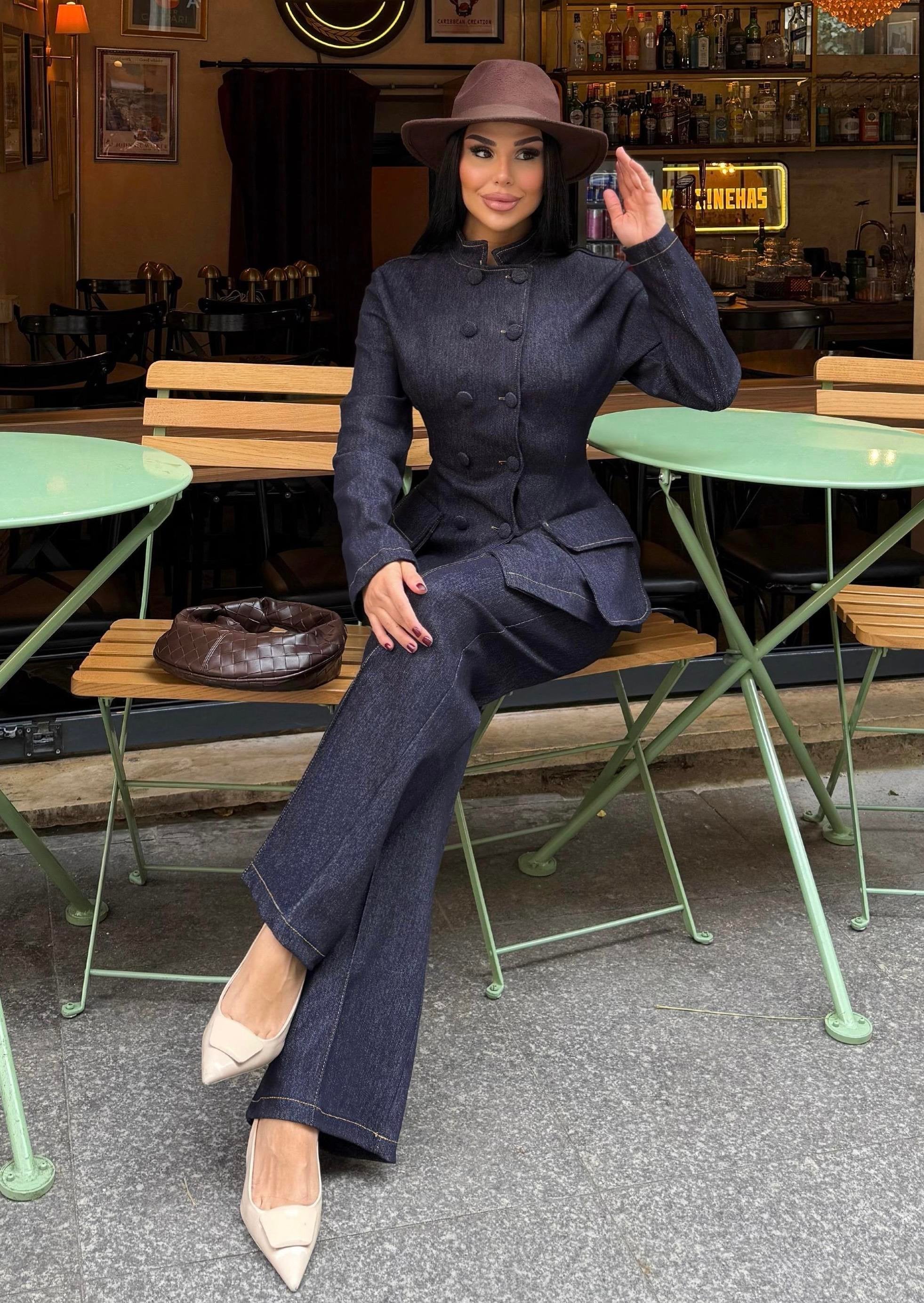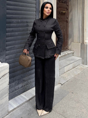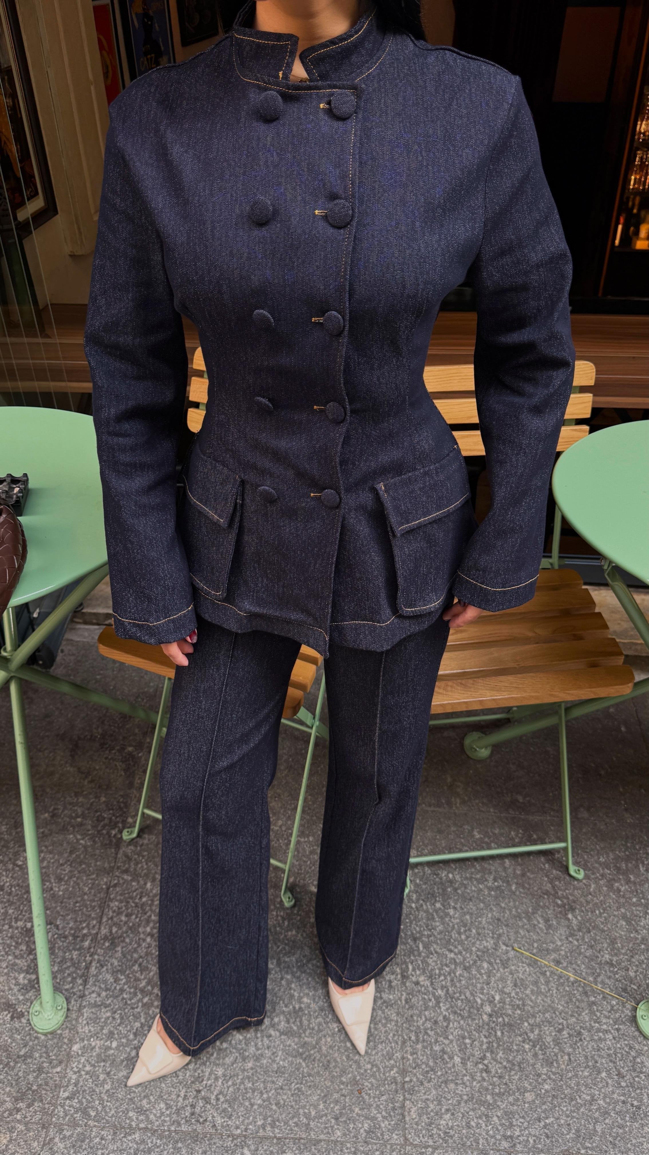 The Denim Suit combines modern style with everyday comfort. Crafted from stretch denim fabric, it offers flexibility and ease of movement while maintaining a structured and elegant look.