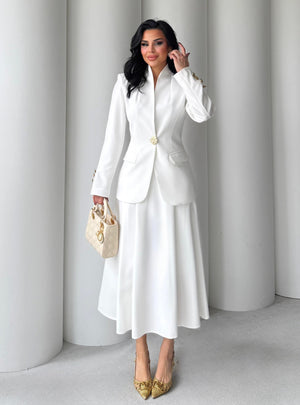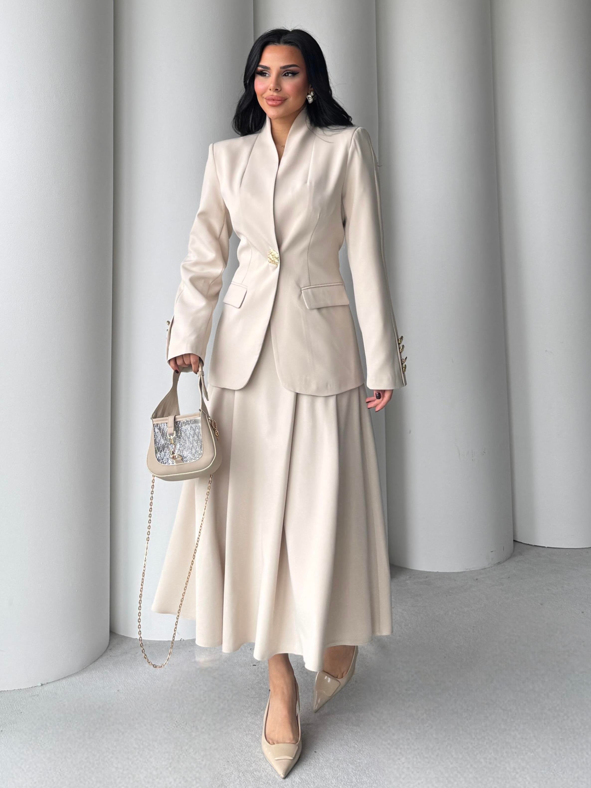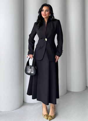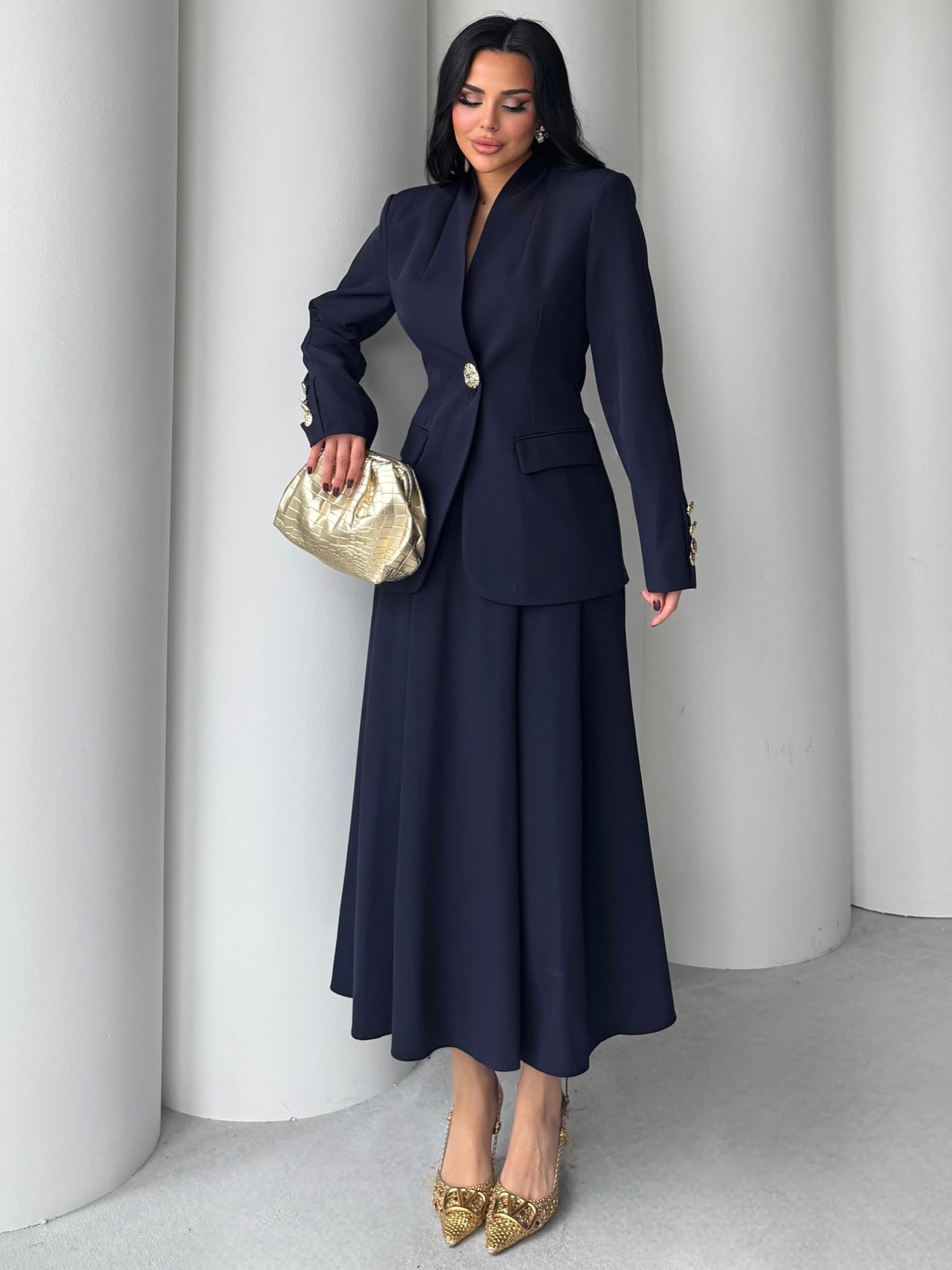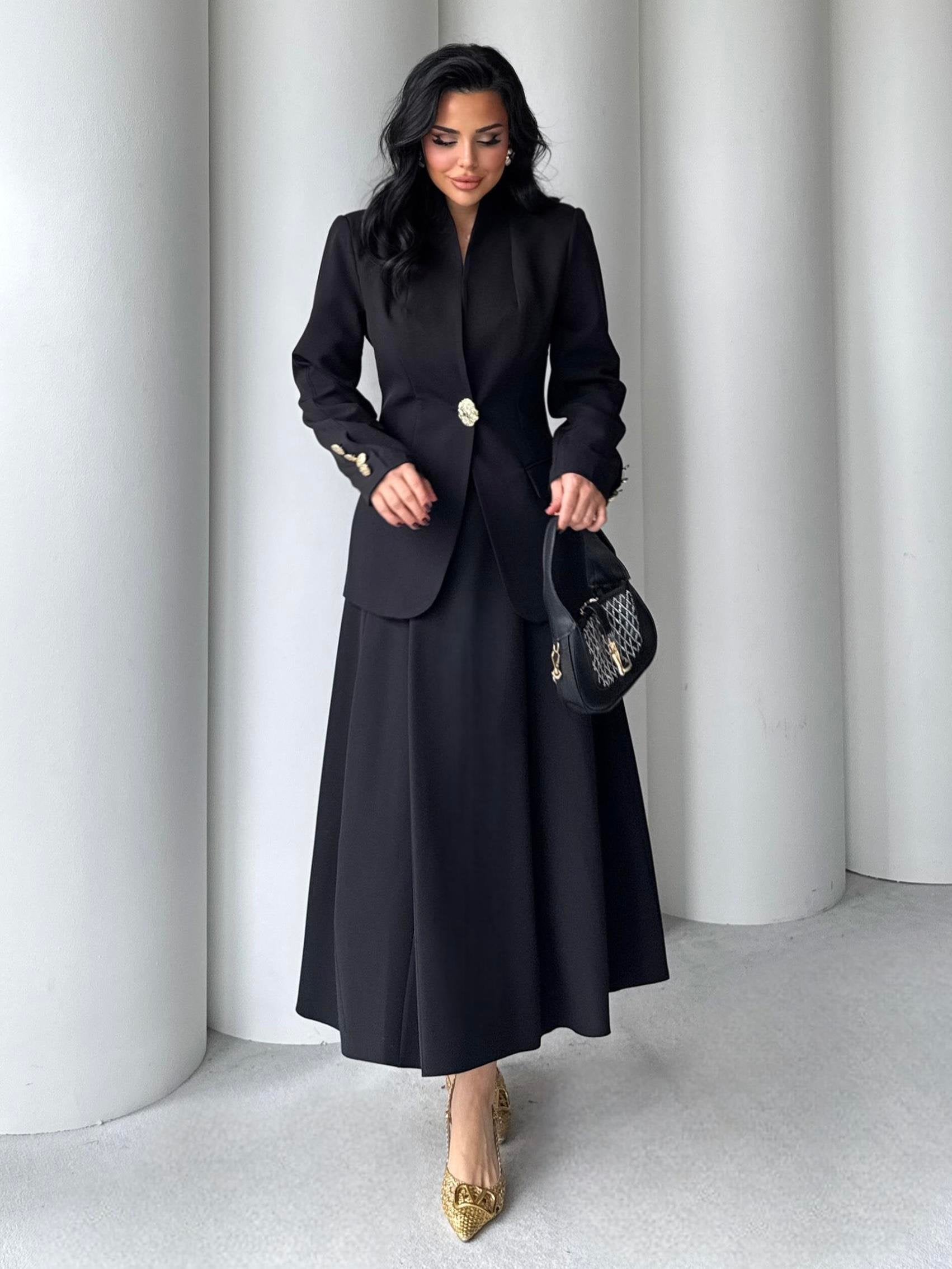 طقم بتفاصيل الأزرار الذهبية – تصميم أنيق من قماش دبل كريب مستورد (SK002)