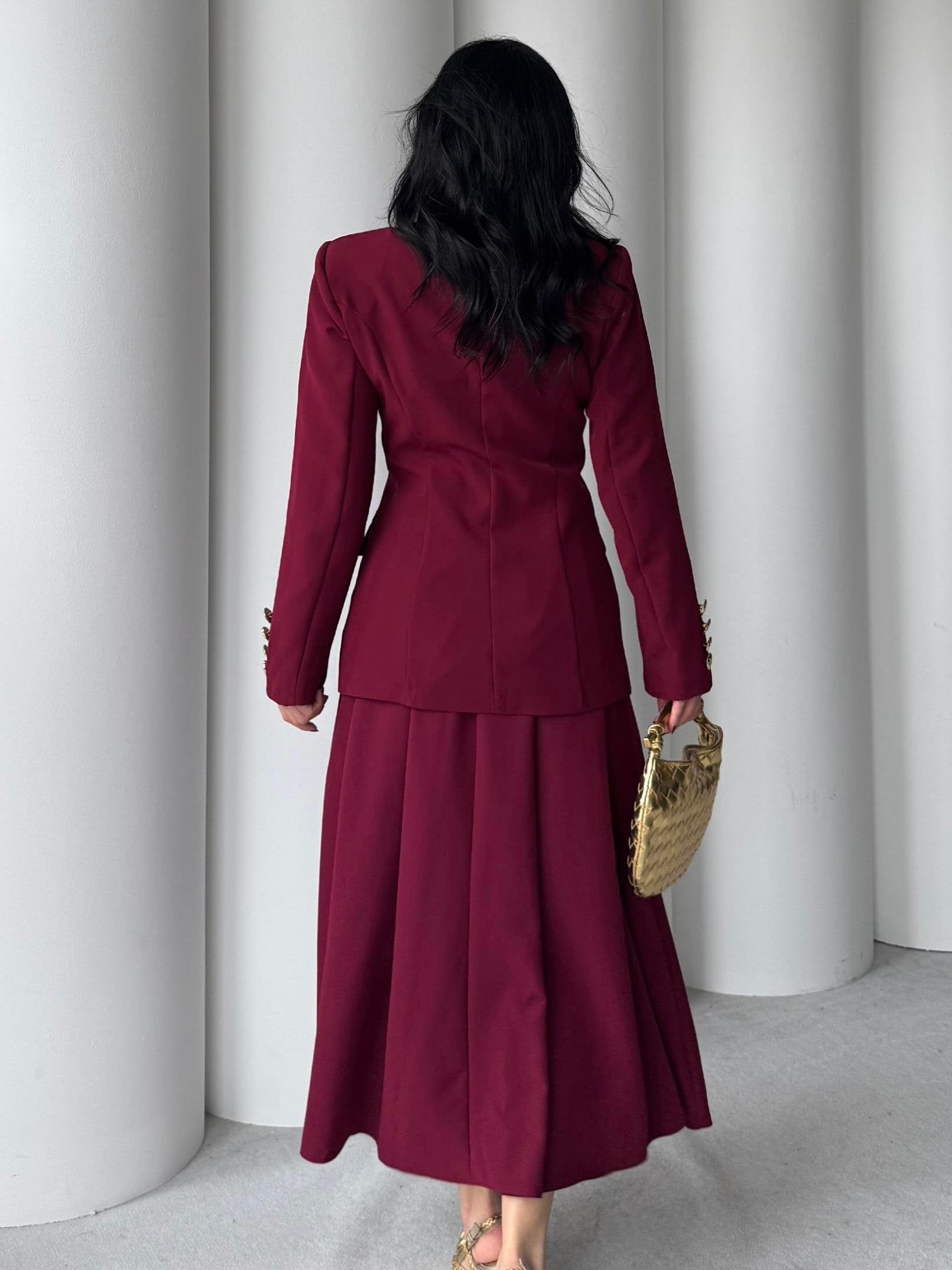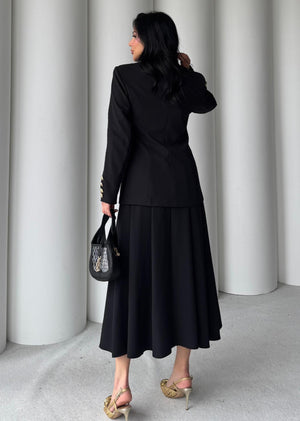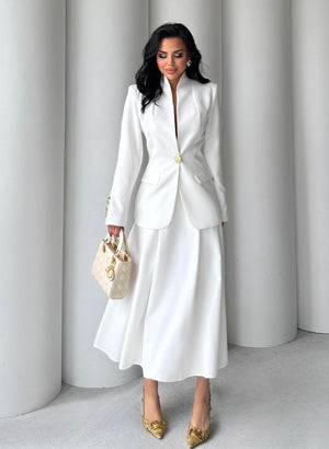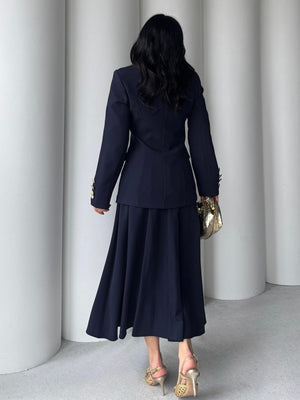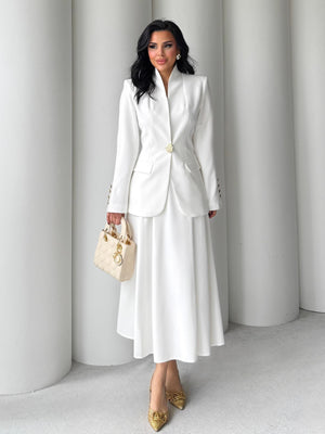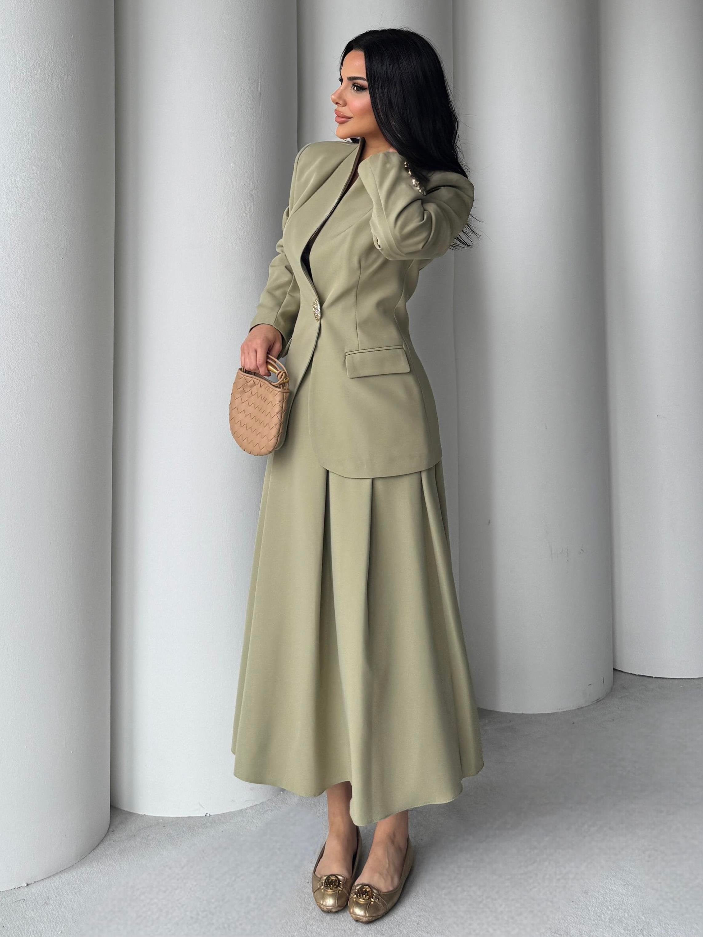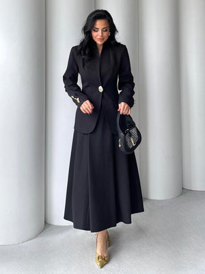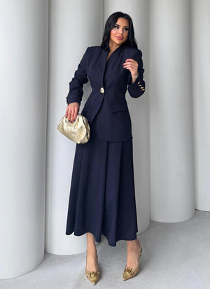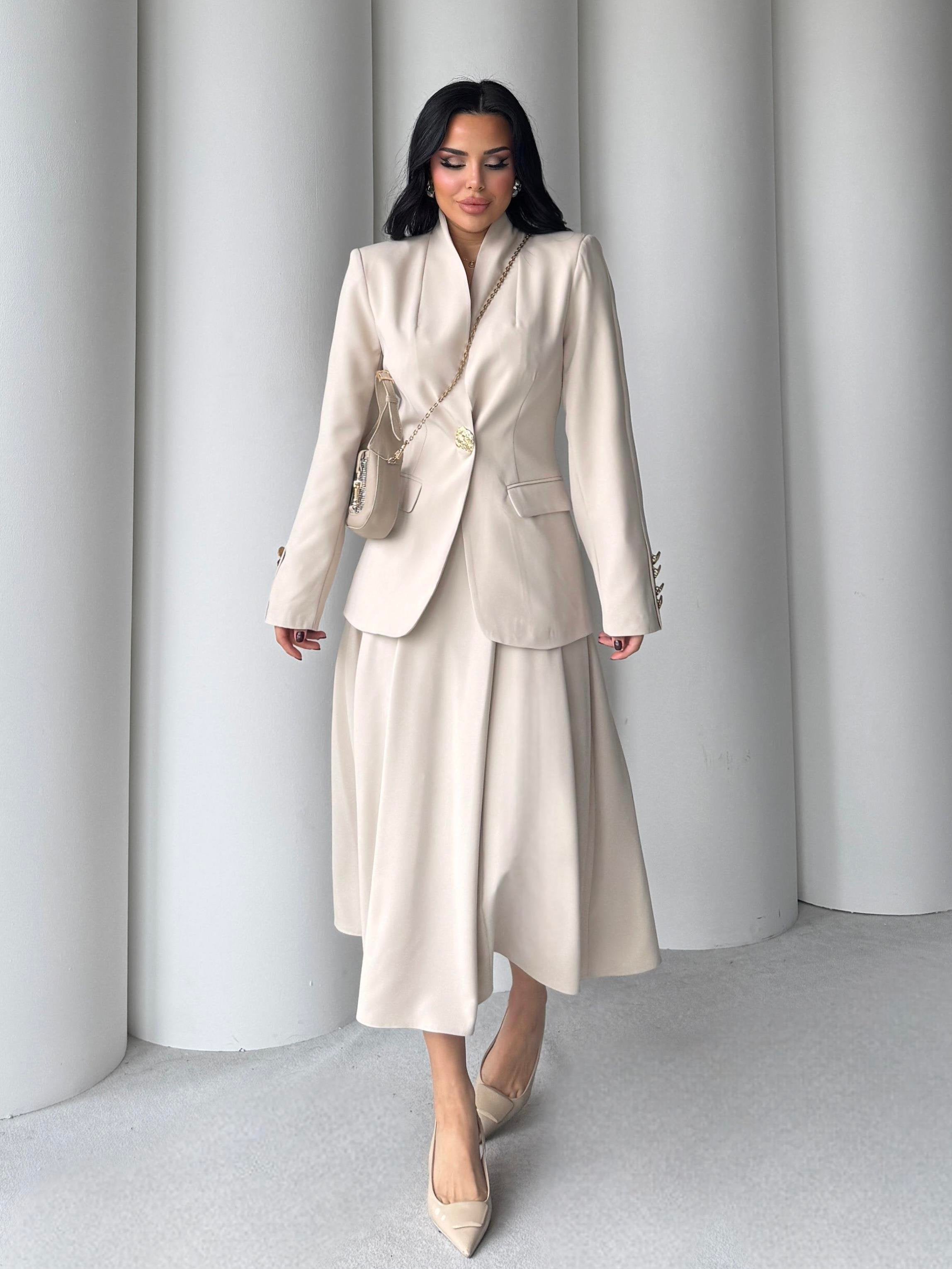 طقم بتفاصيل الأزرار الذهبية – تصميم أنيق من قماش دبل كريب مستورد (SK002)
