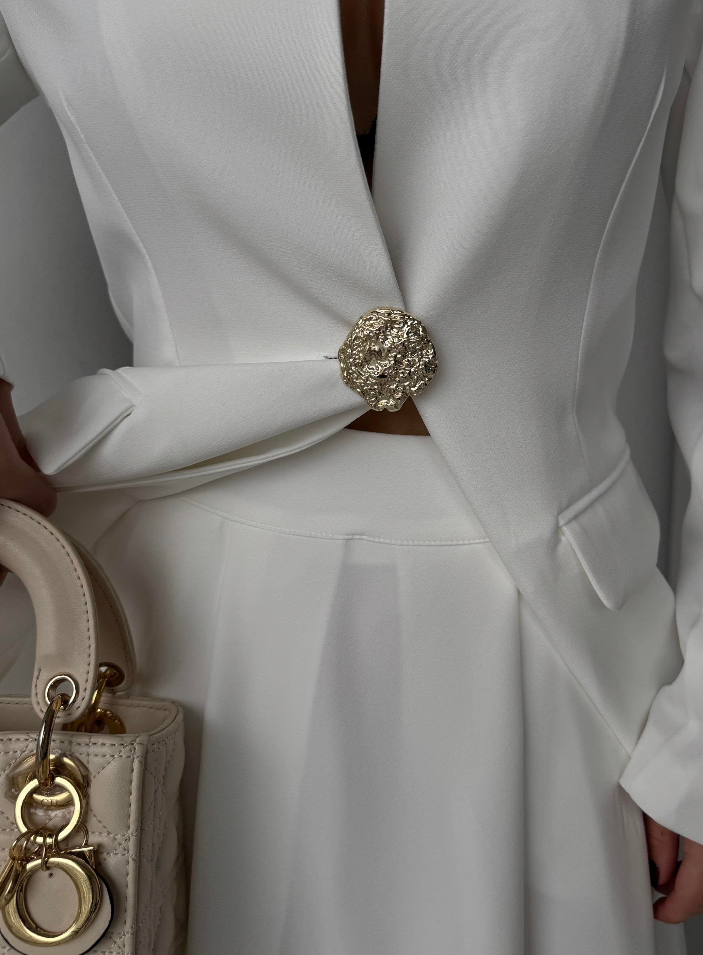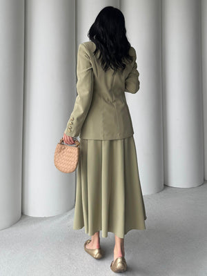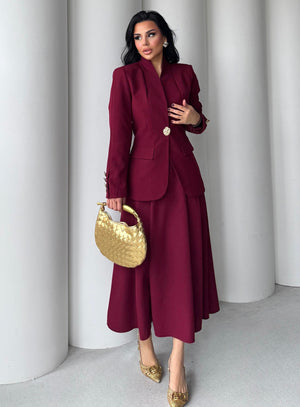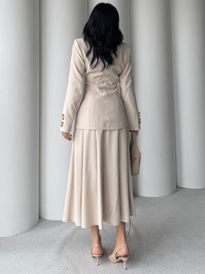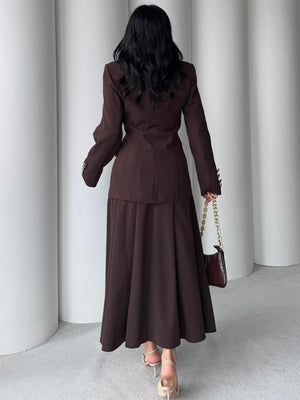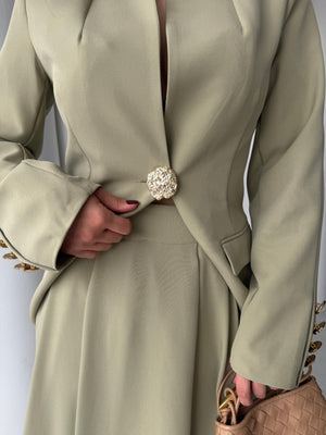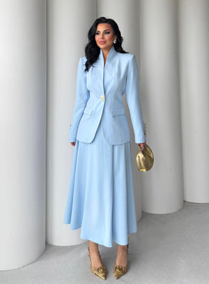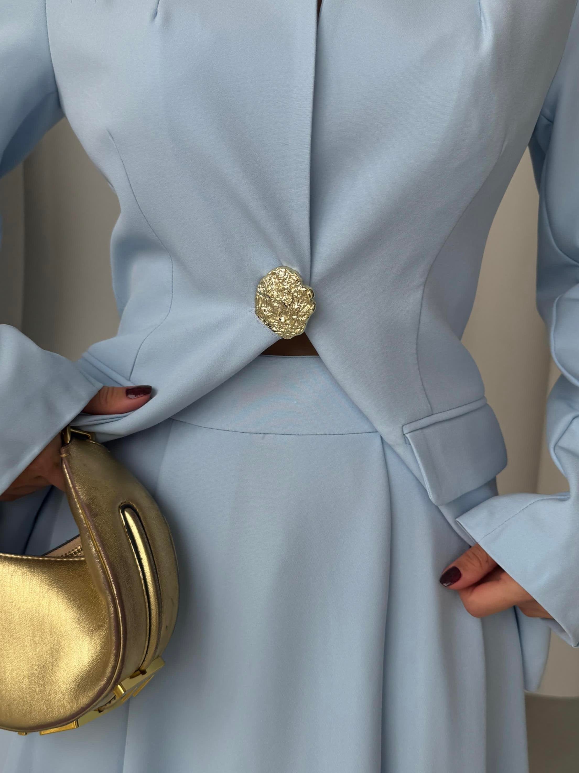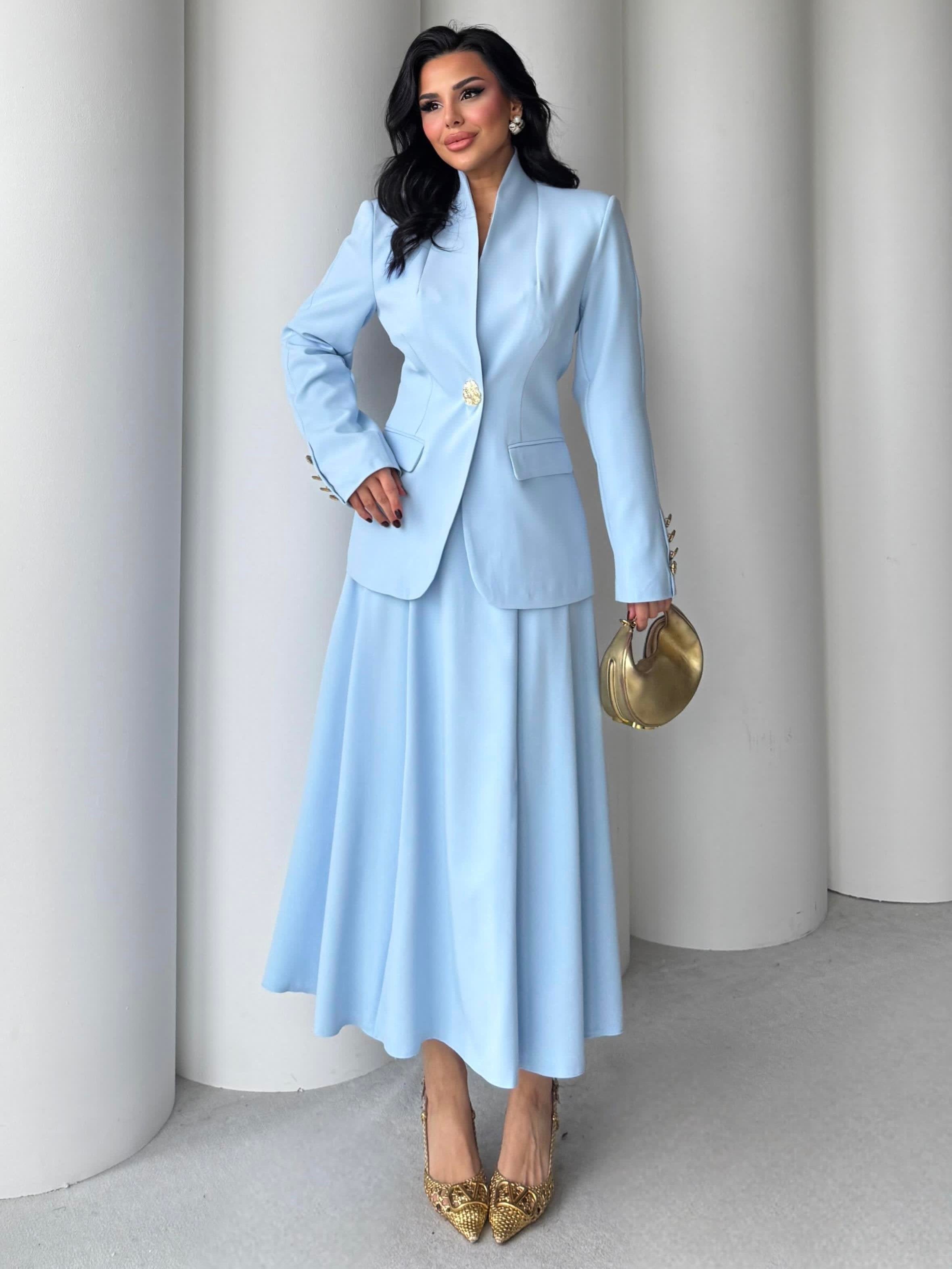 طقم بتفاصيل الأزرار الذهبية – تصميم أنيق من قماش دبل كريب مستورد (SK002)