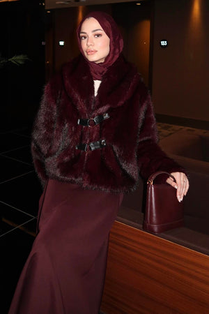 Faux Fur Jacket with Leather Belt (JK015)