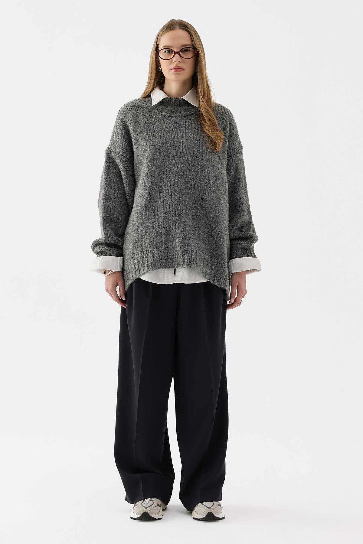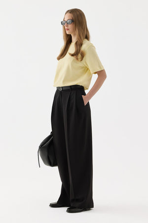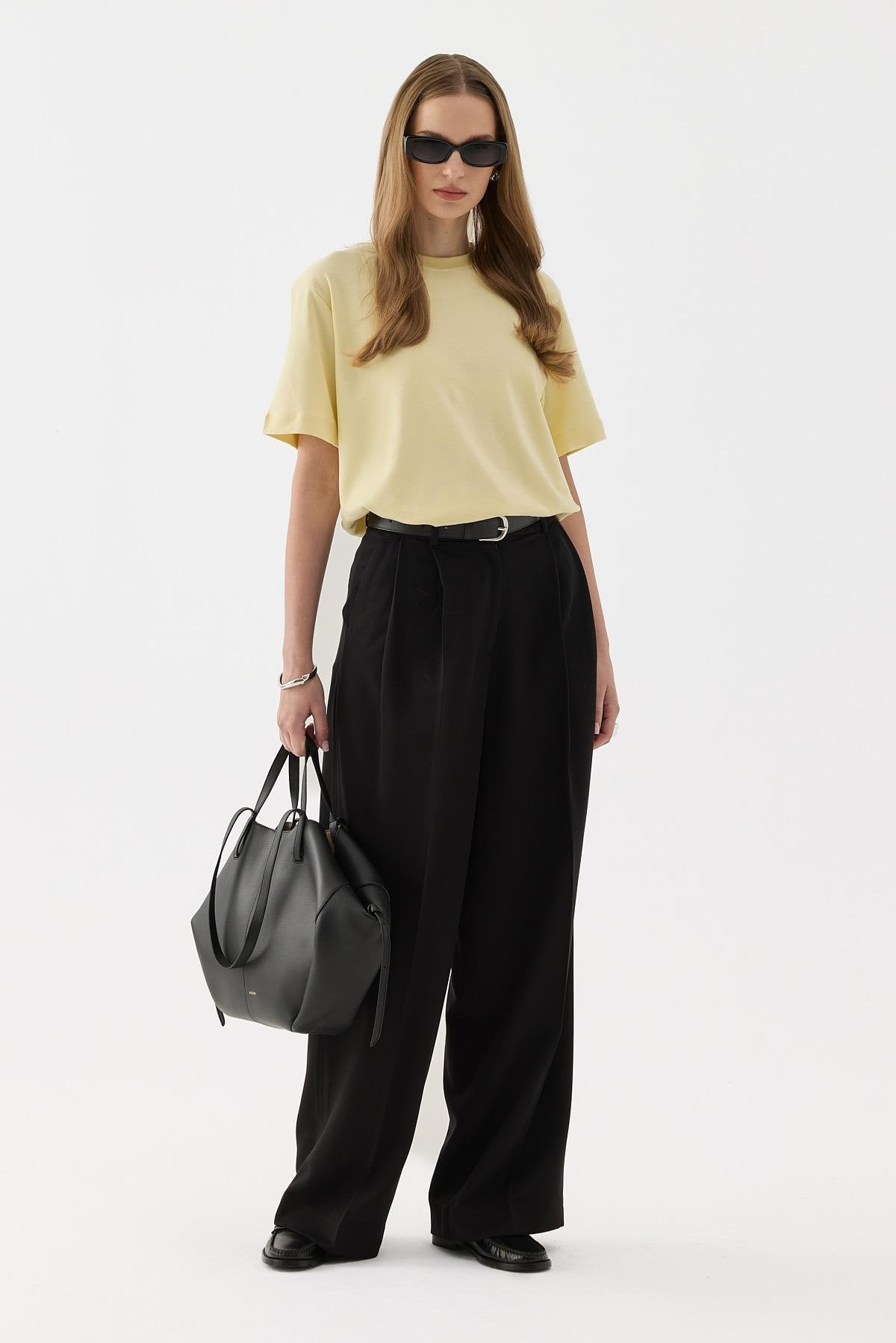 The High-Waist Fluid Trousers are designed with modern lines and understated elegance, making them a versatile wardrobe essential.