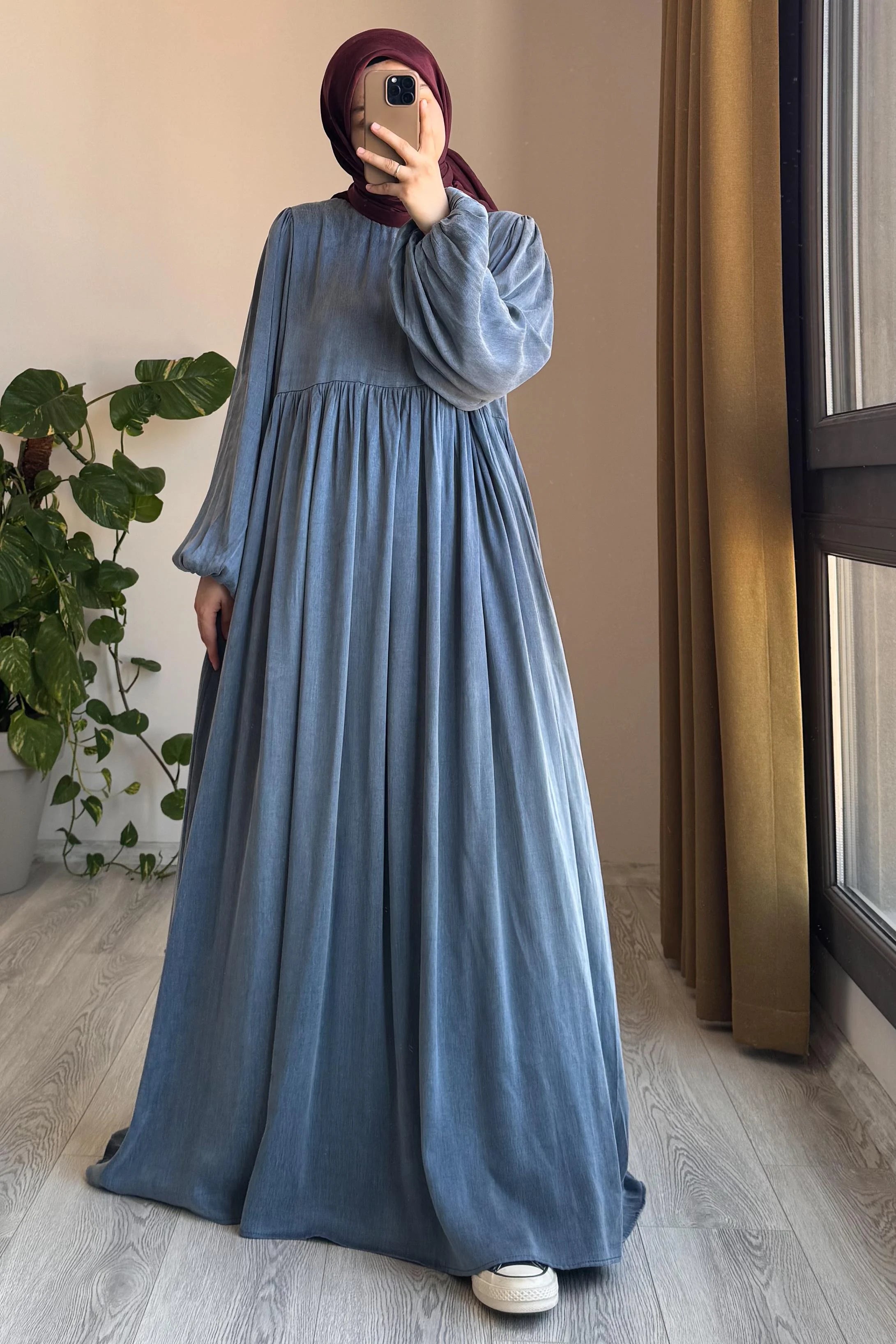 An elegant dress crafted from 100% premium silk cupra fabric, offering a soft texture and a beautifully flowing silhouette. Designed for comfort and modest wear, this dress provides a refined and graceful look suitable for daily wear and simple occasions.