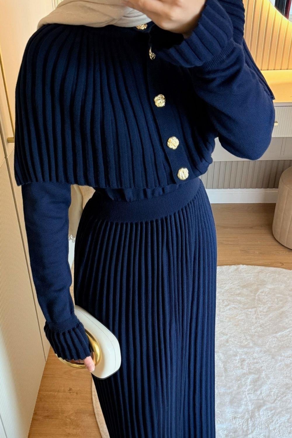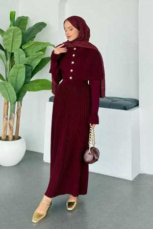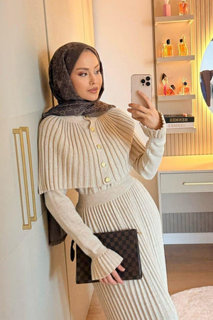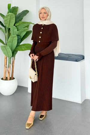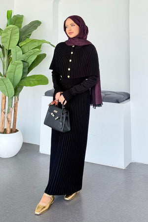 A stunning two-piece set designed for modern women who love refined simplicity. Crafted from soft, stretchy knit fabric, this set features a sleeveless inner dress and a button-detailed crop top — offering versatility and chic layering options. Perfect for both casual days and special occasions.
