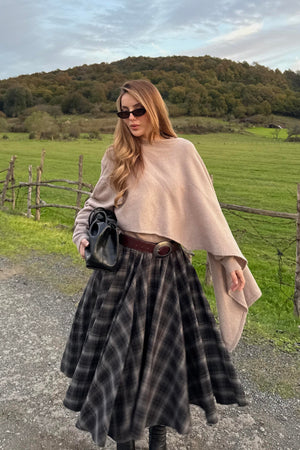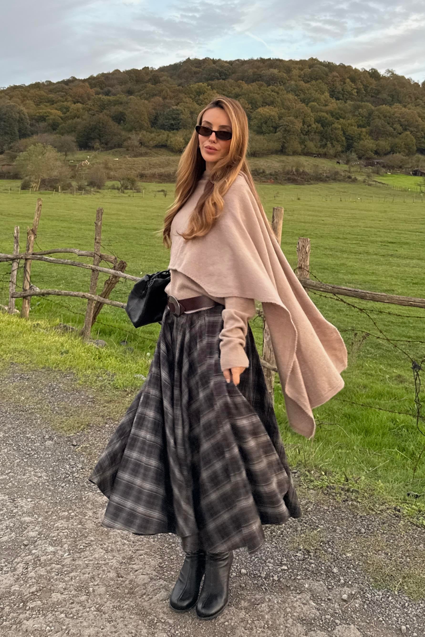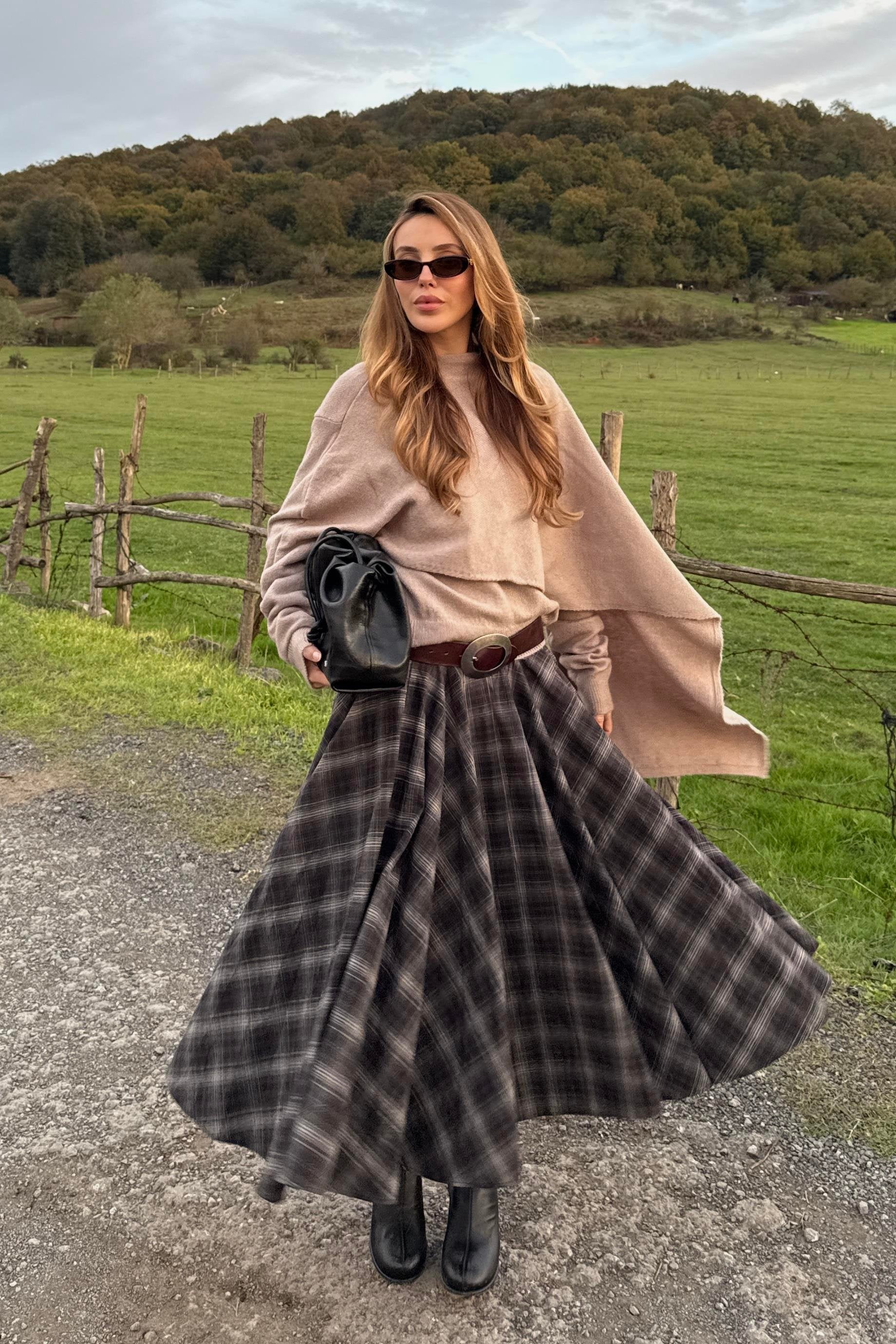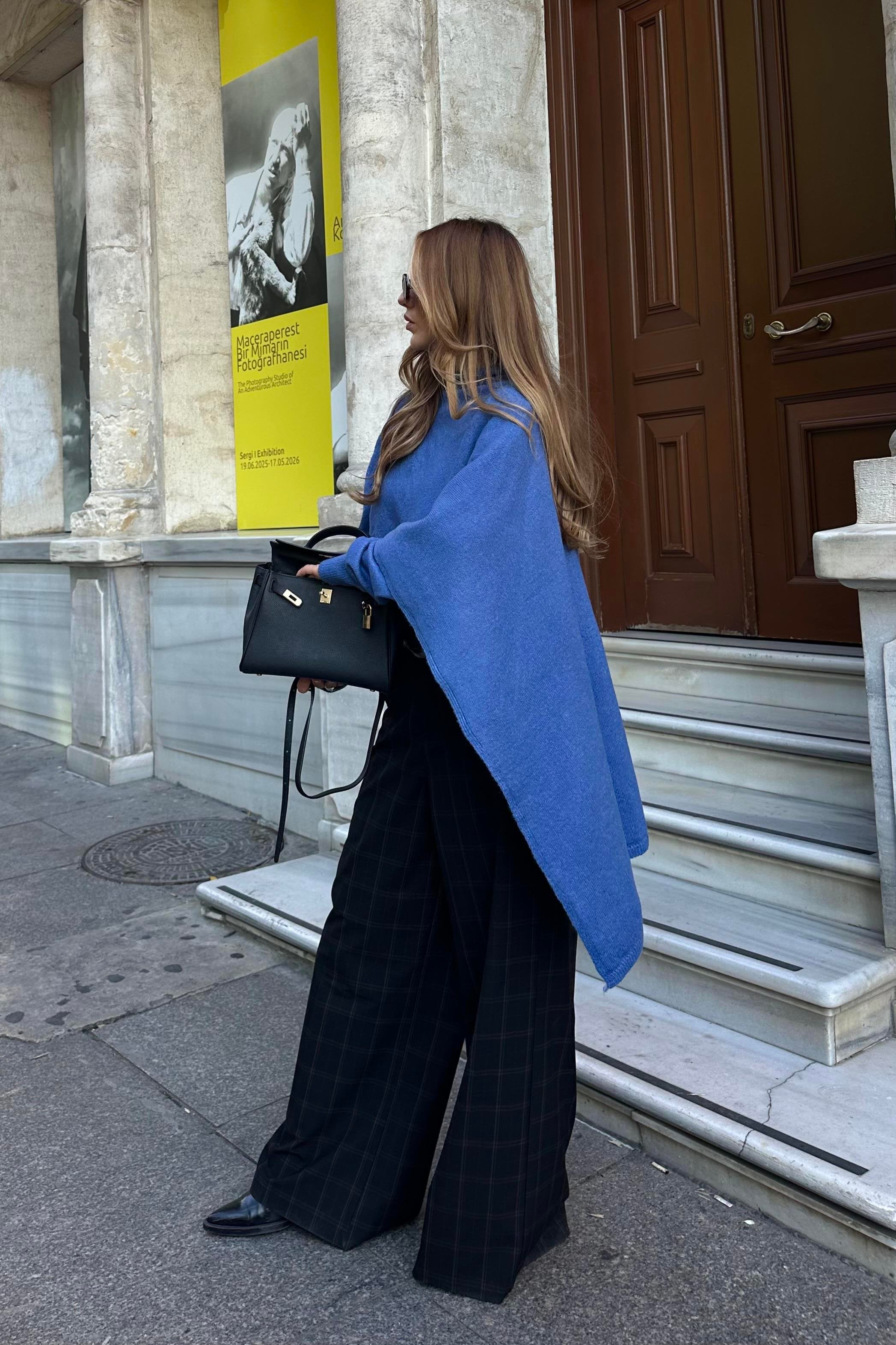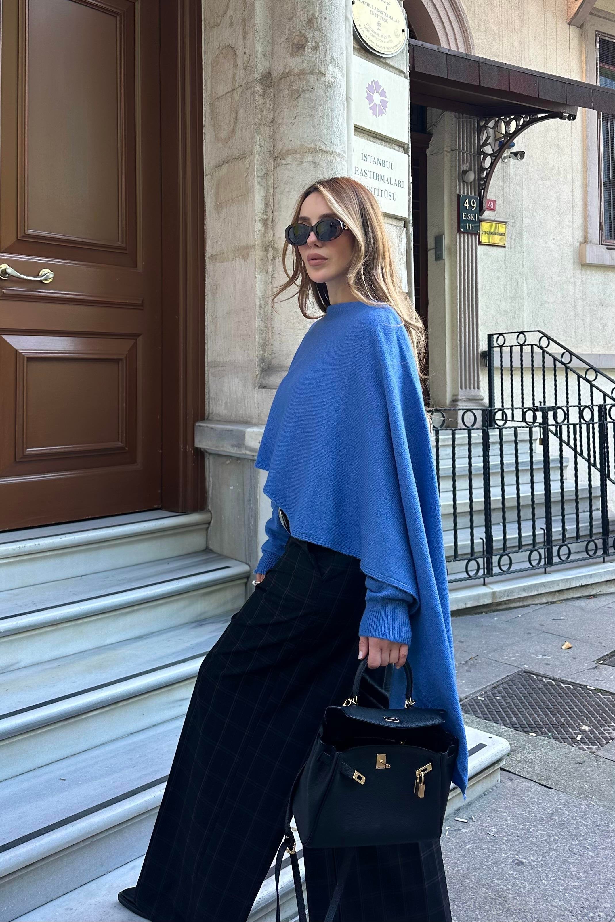 A soft knit sweater with a practical and elegant design, featuring an integrated scarf for added warmth and style. Perfect for everyday and winter outfits, easy to style and comfortable to wear.
