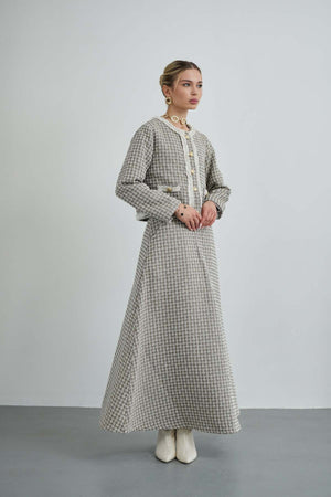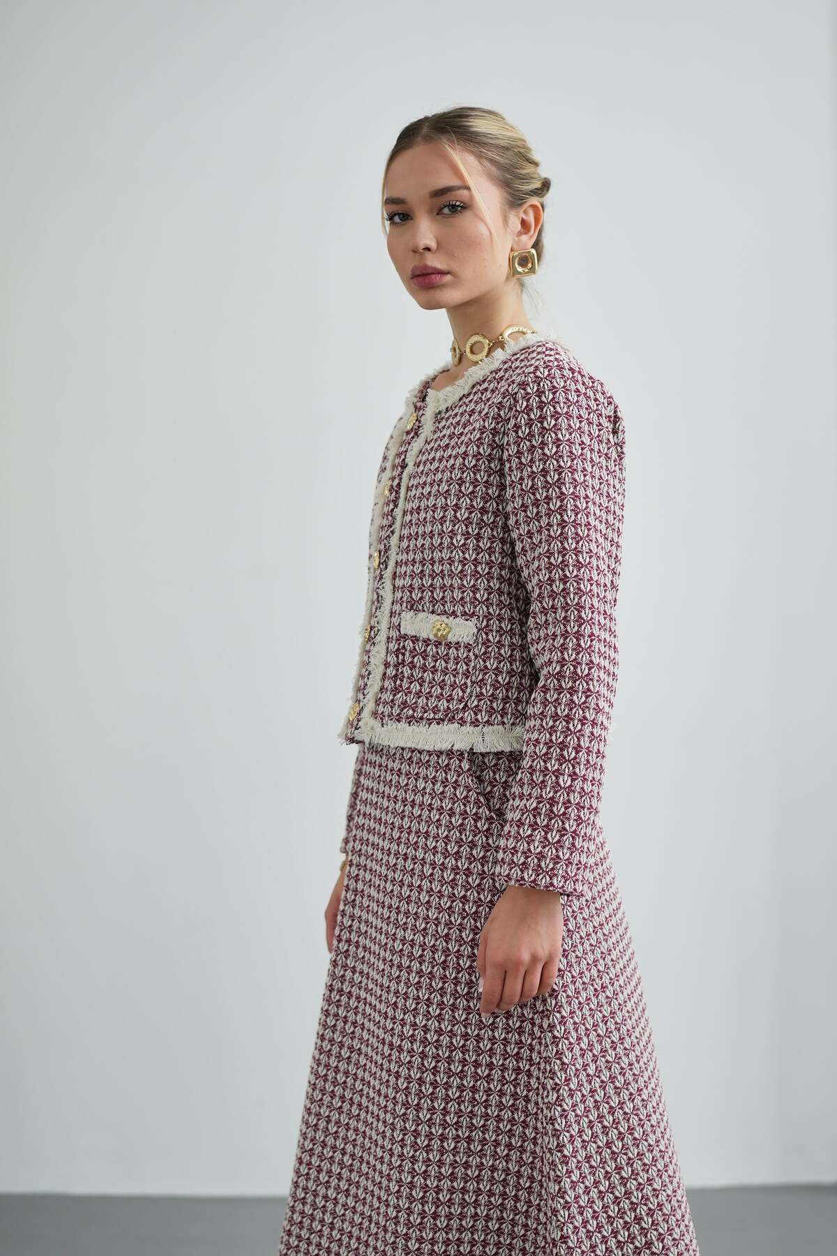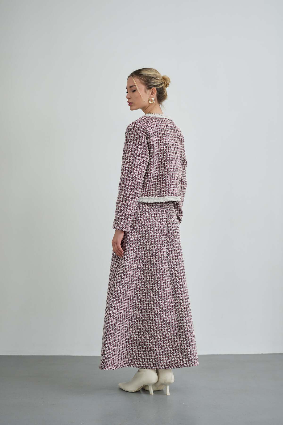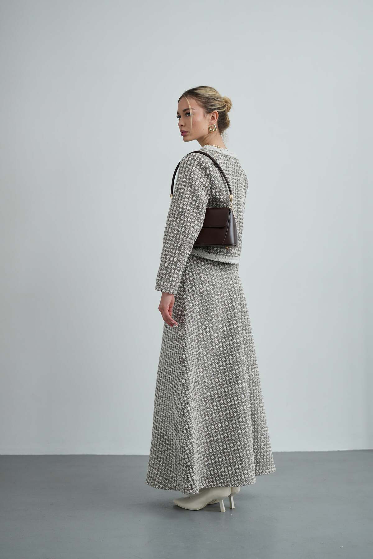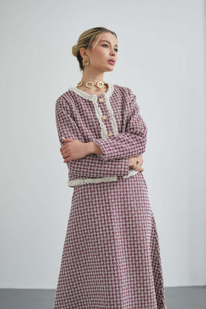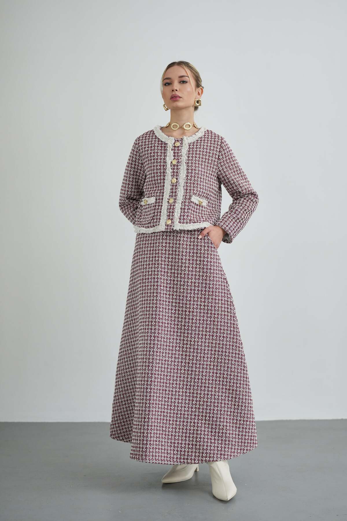 This elegant tweed jacket and skirt suit combines comfort, quality, and timeless style, making it a perfect choice for modest fashion lovers. Crafted from high-quality tweed fabric and fully lined, it offers a comfortable fit and added warmth, ideal for seasonal transitions.