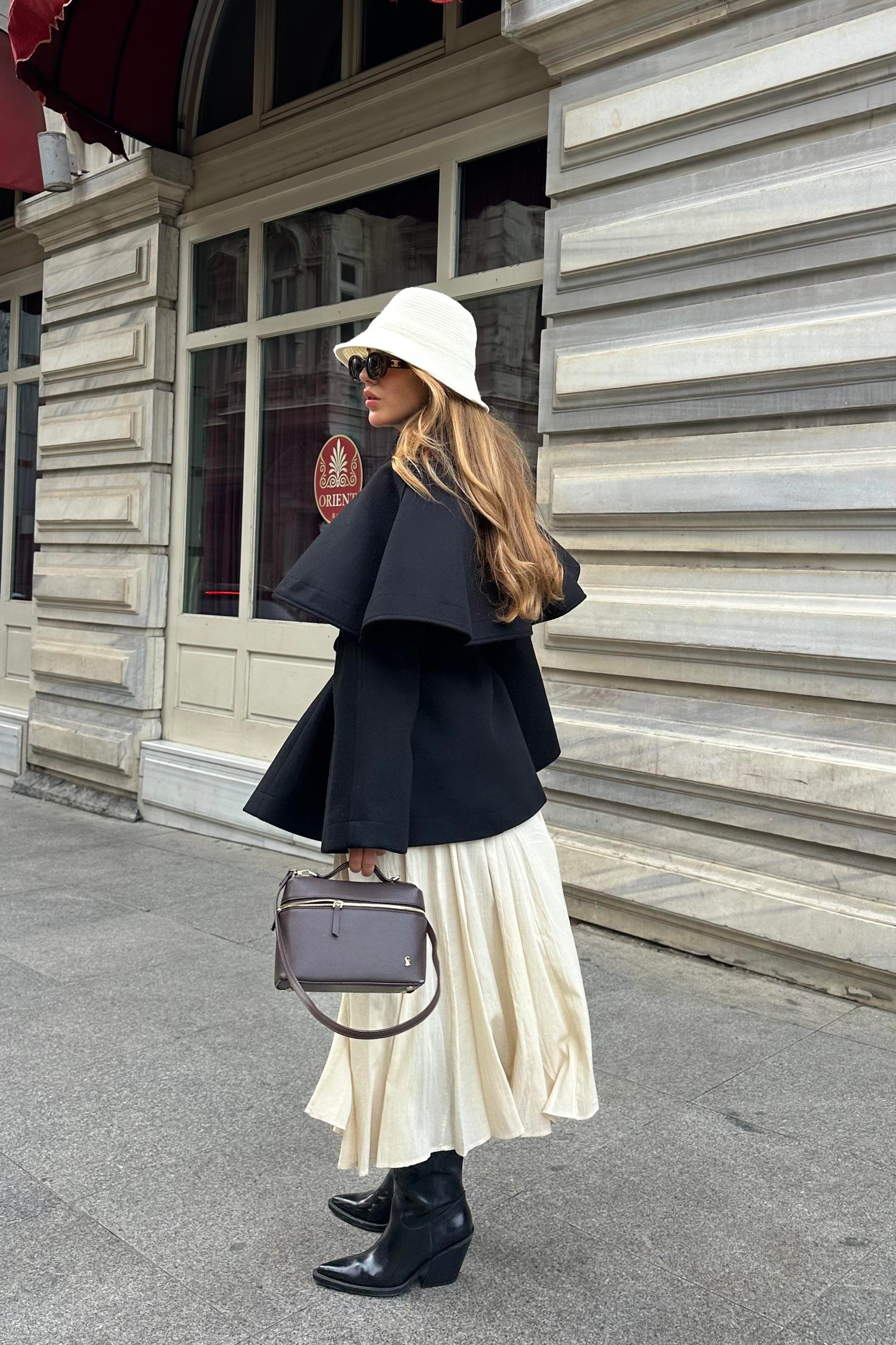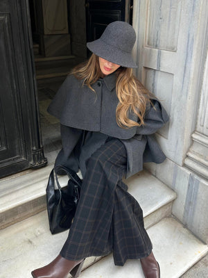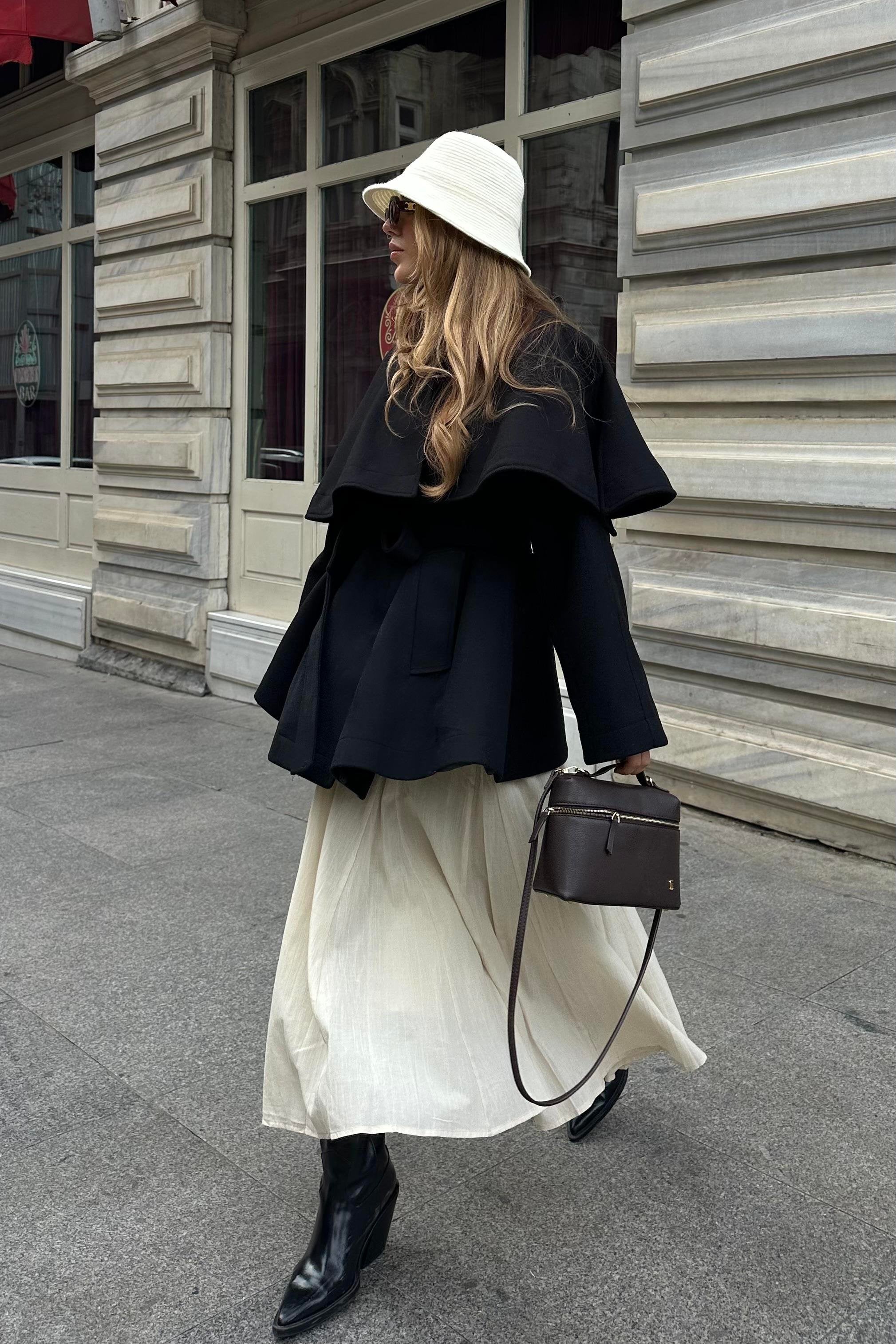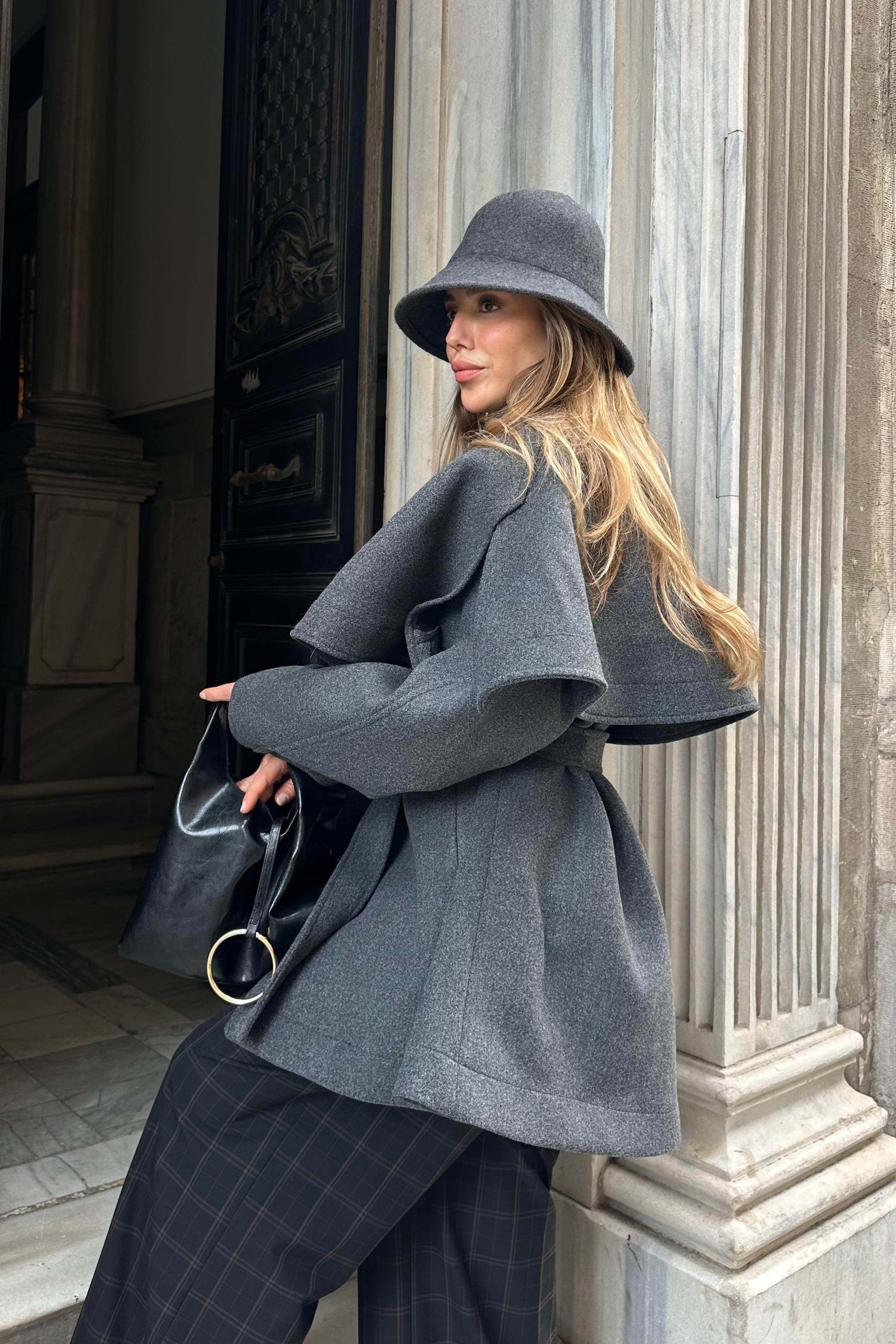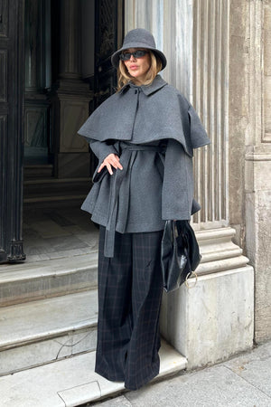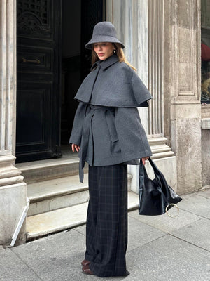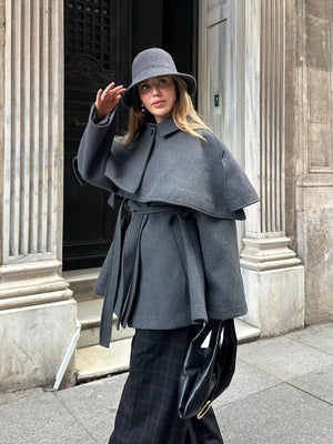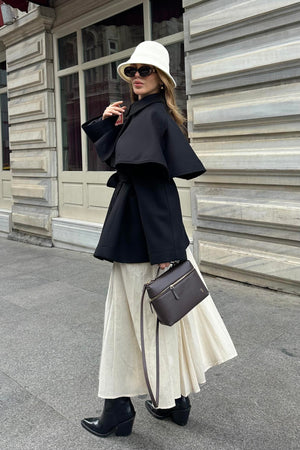 A luxurious winter coat featuring an elegant cape-style (pelerin) design that adds a sophisticated and distinctive look. Crafted from refined coat fabric, perfect for chic everyday wear and winter occasions.