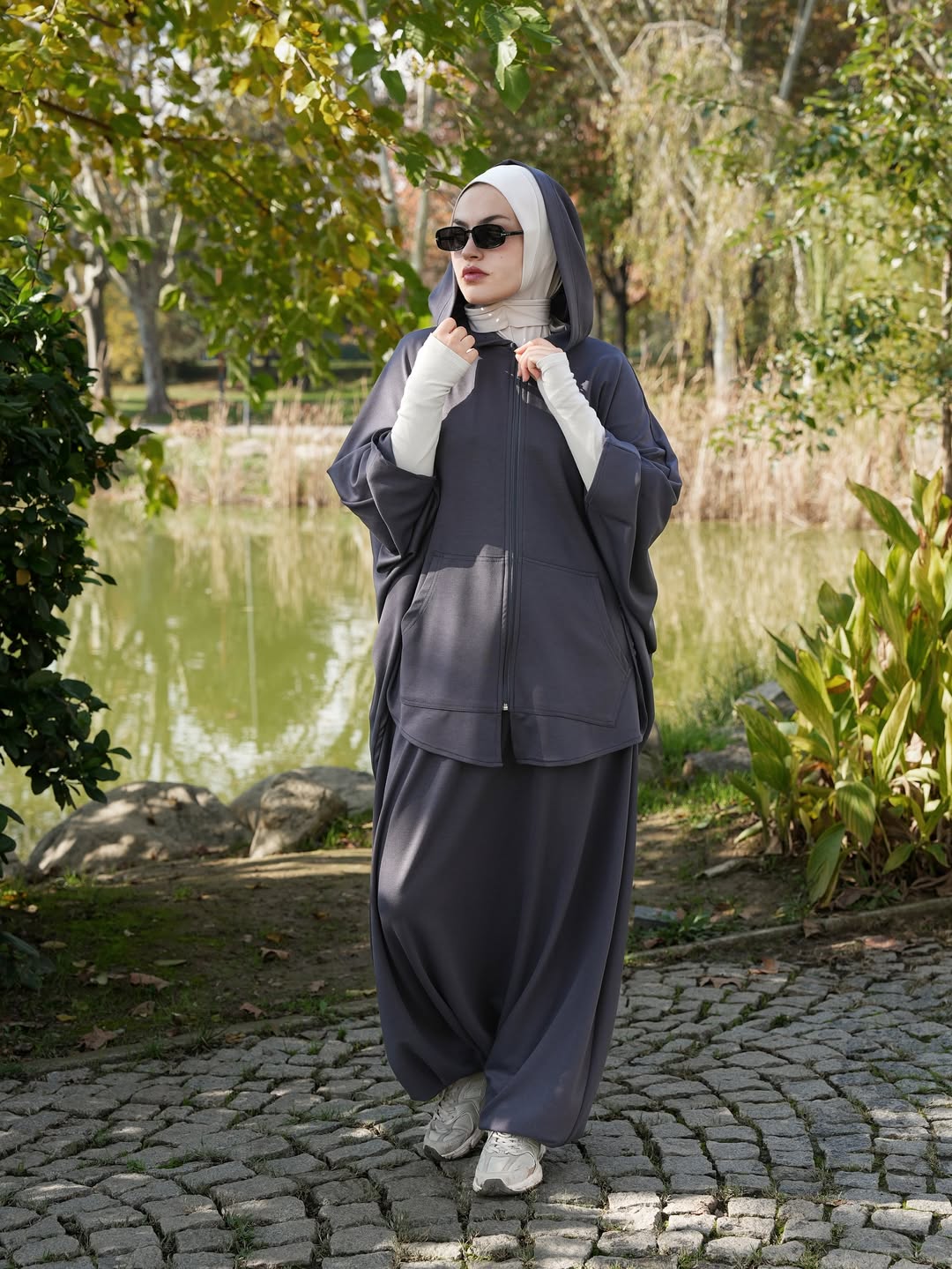 A comfortable and practical modest sports set designed specifically for hijabi women. Featuring a loose, modest fit that does not outline the body, this set is ideal for daily wear, walking, and light physical activities.