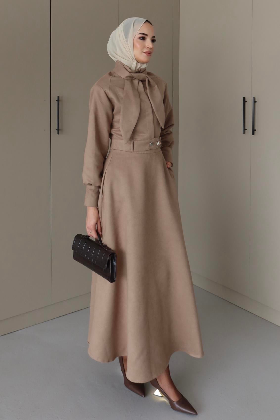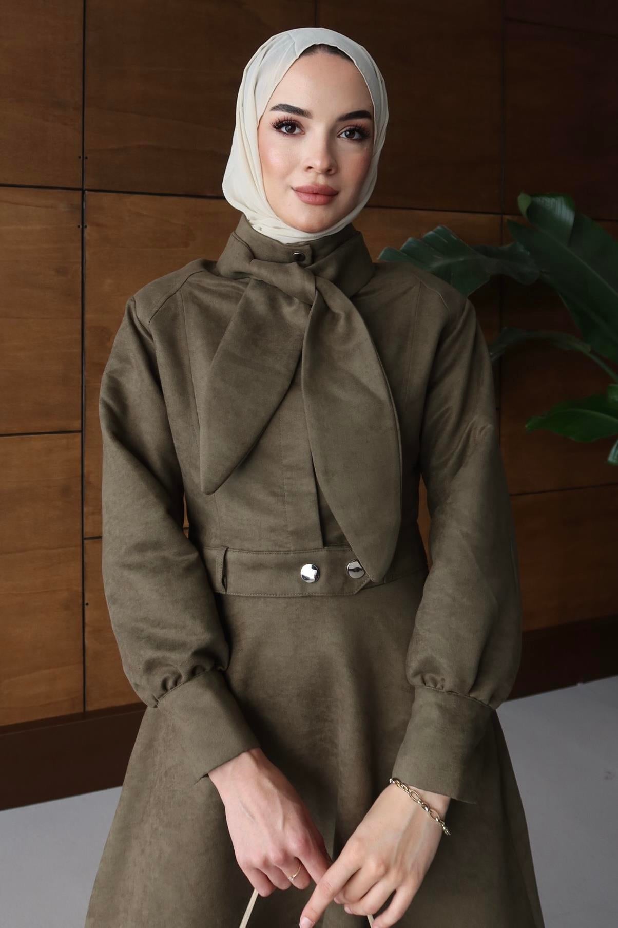 Finished with a matching scarf detail for a modern, sophisticated touch, and designed with a flattering fit suitable for everyday wear and special occasions.