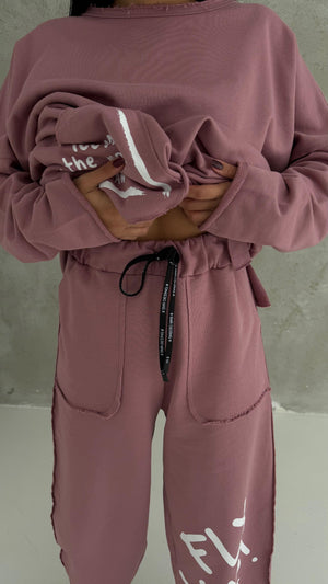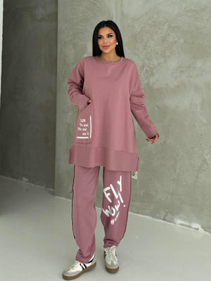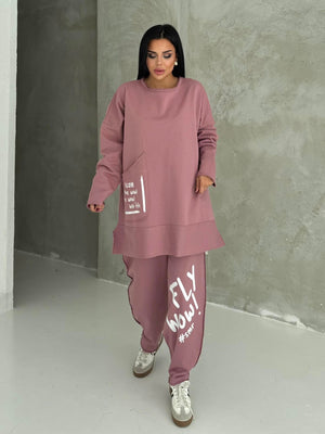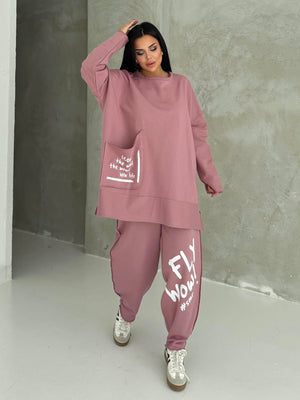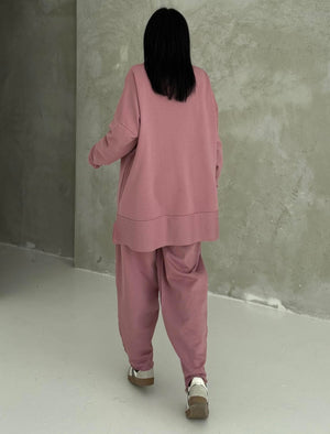 Featuring an oversized fit, elastic waistband, and functional pocket details, this set ensures ease of movement and practical comfort. The dusty rose shade adds a feminine and stylish touch, perfect for casual outings, light workouts, and travel.
