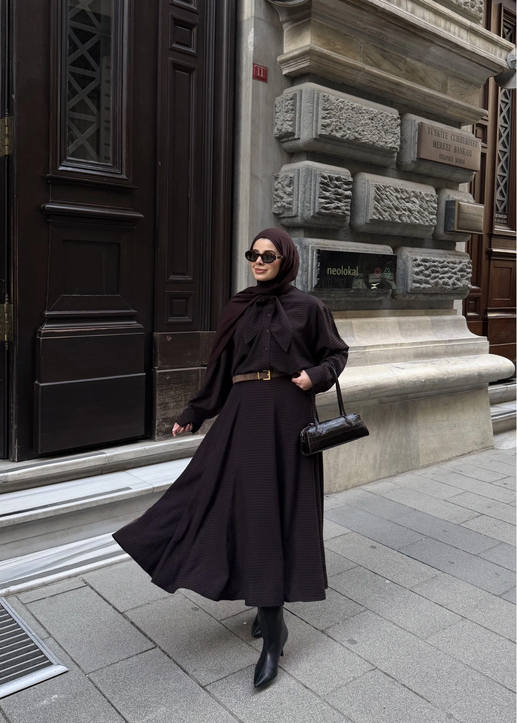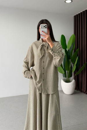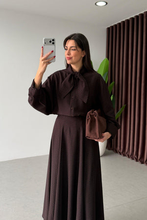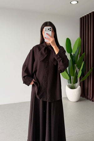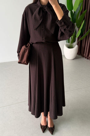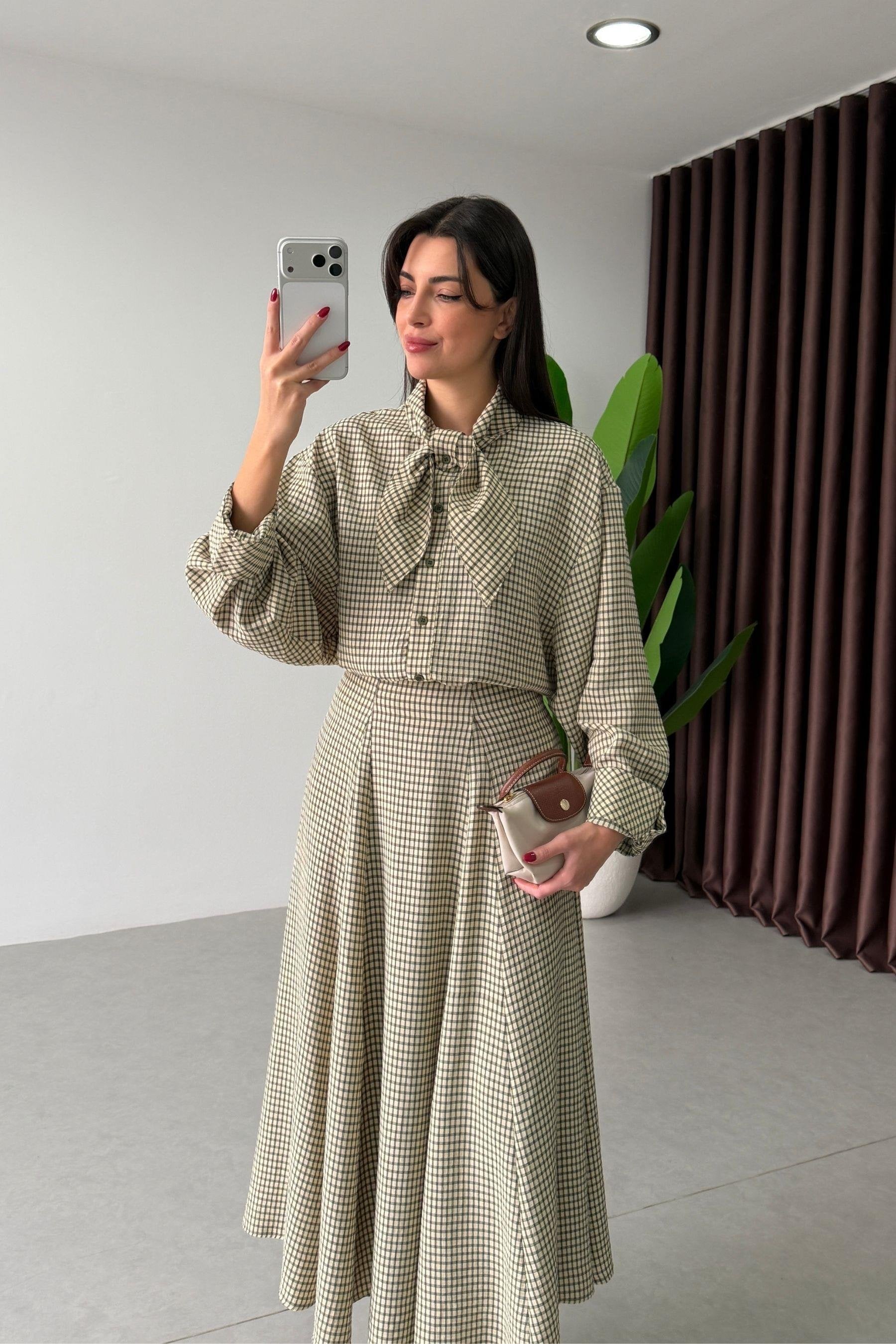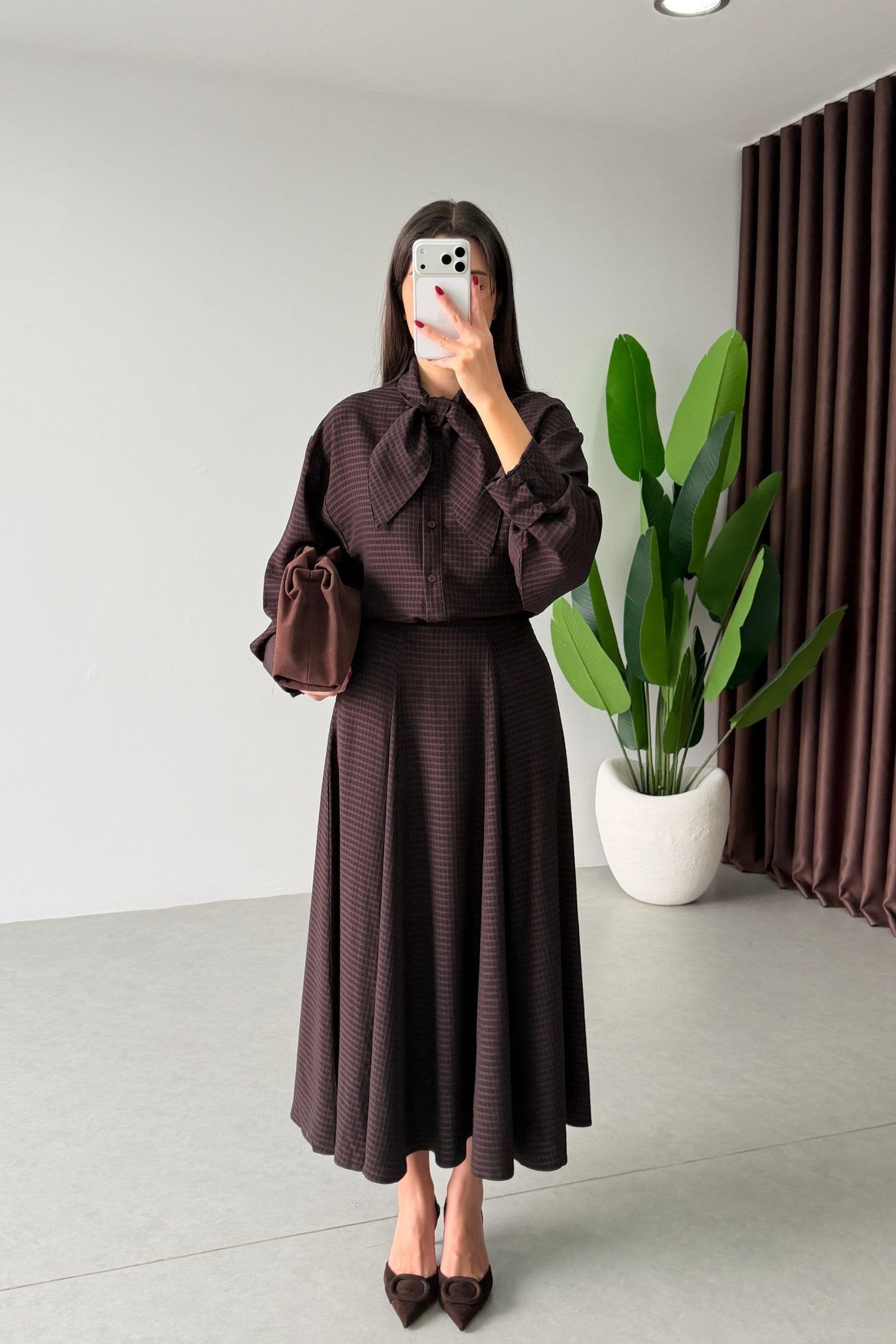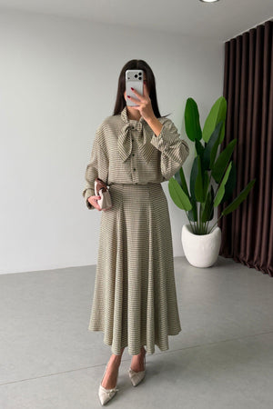 The Ekose Scarf-Detail Skirt Set is designed for a polished yet effortless look, combining modern style with everyday comfort.