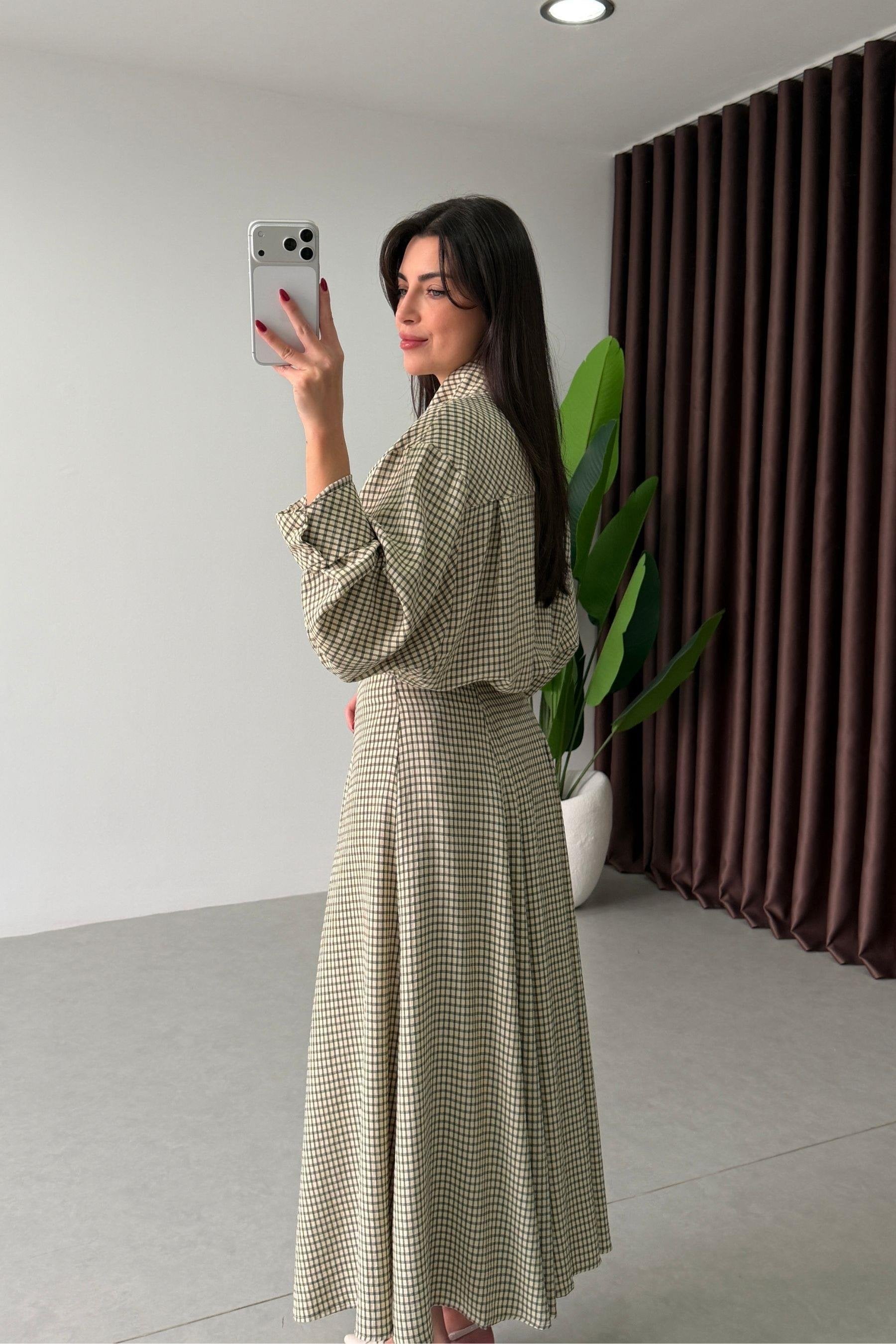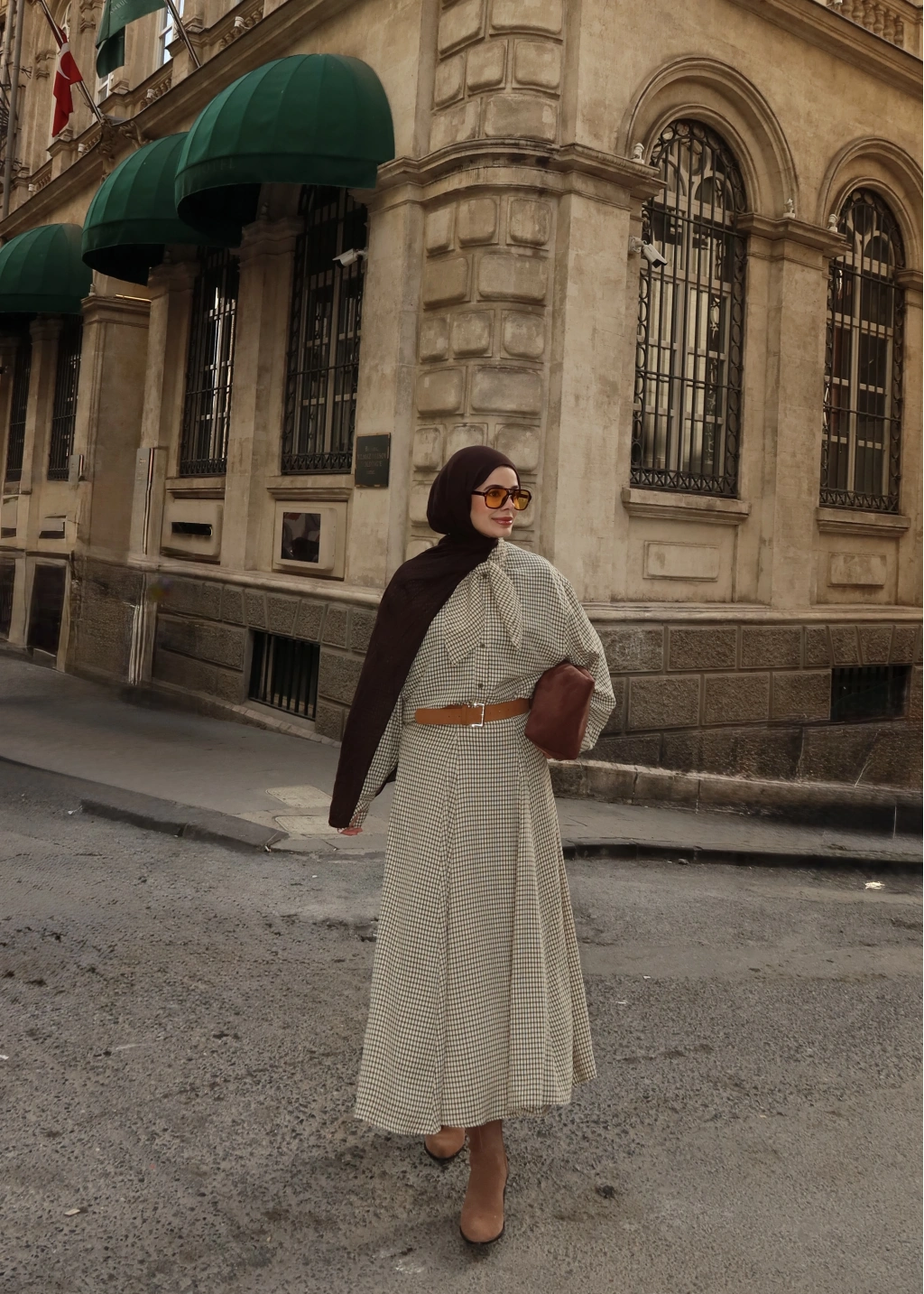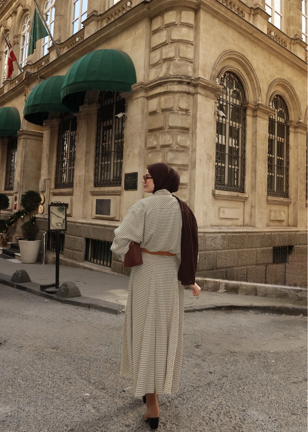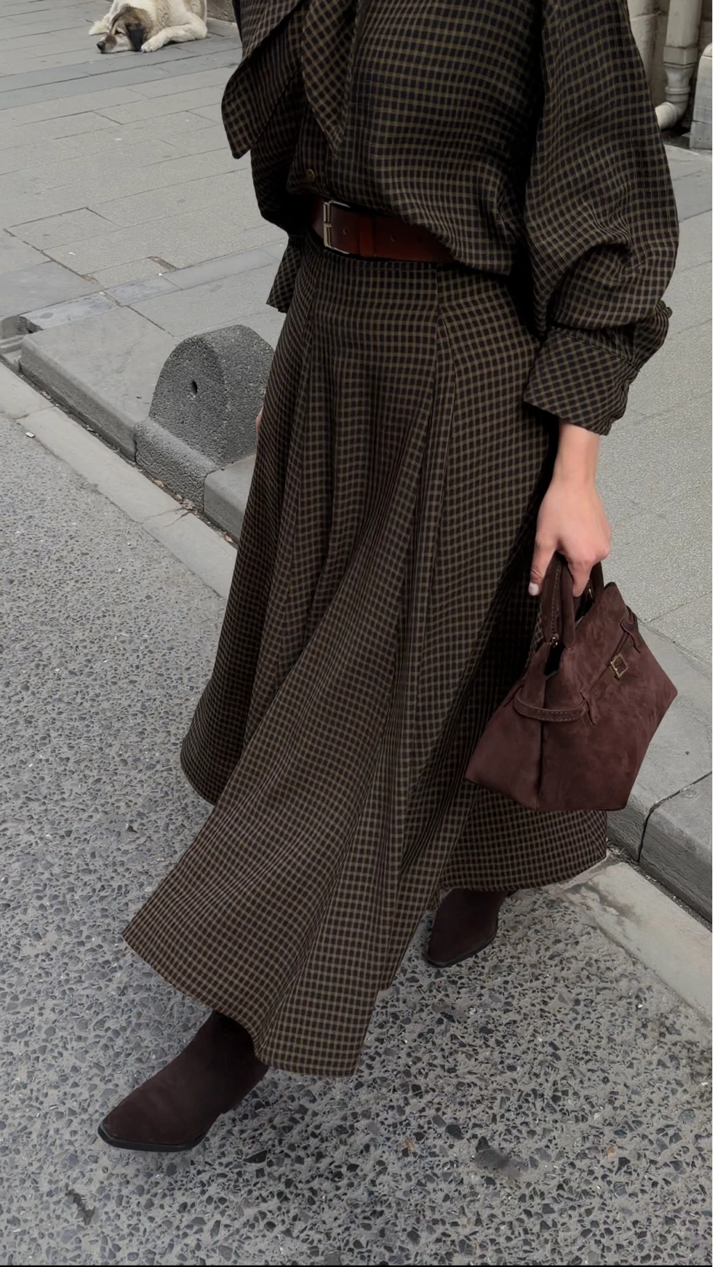 The Ekose Scarf-Detail Skirt Set is designed for a polished yet effortless look, combining modern style with everyday comfort.
