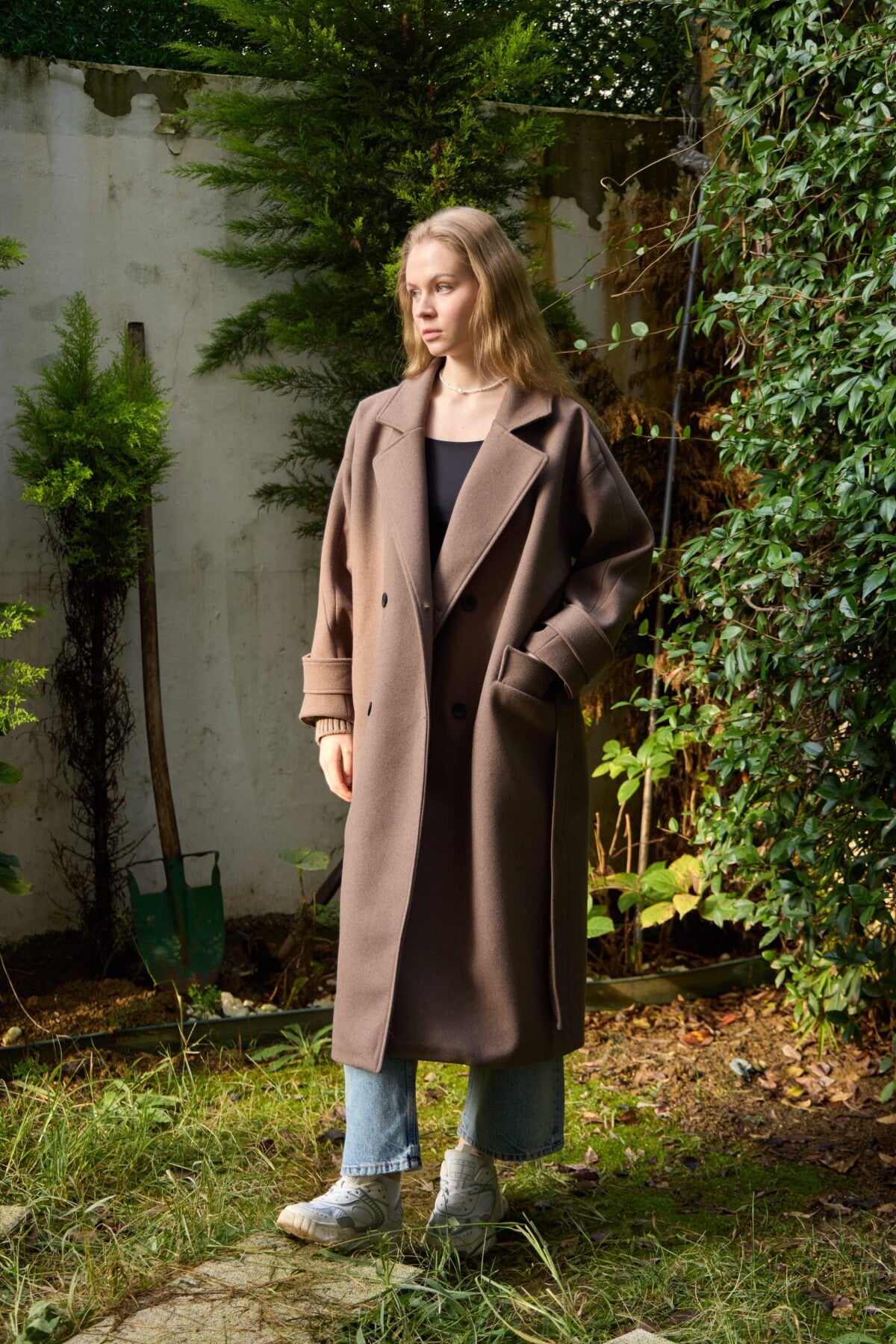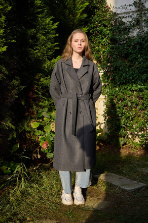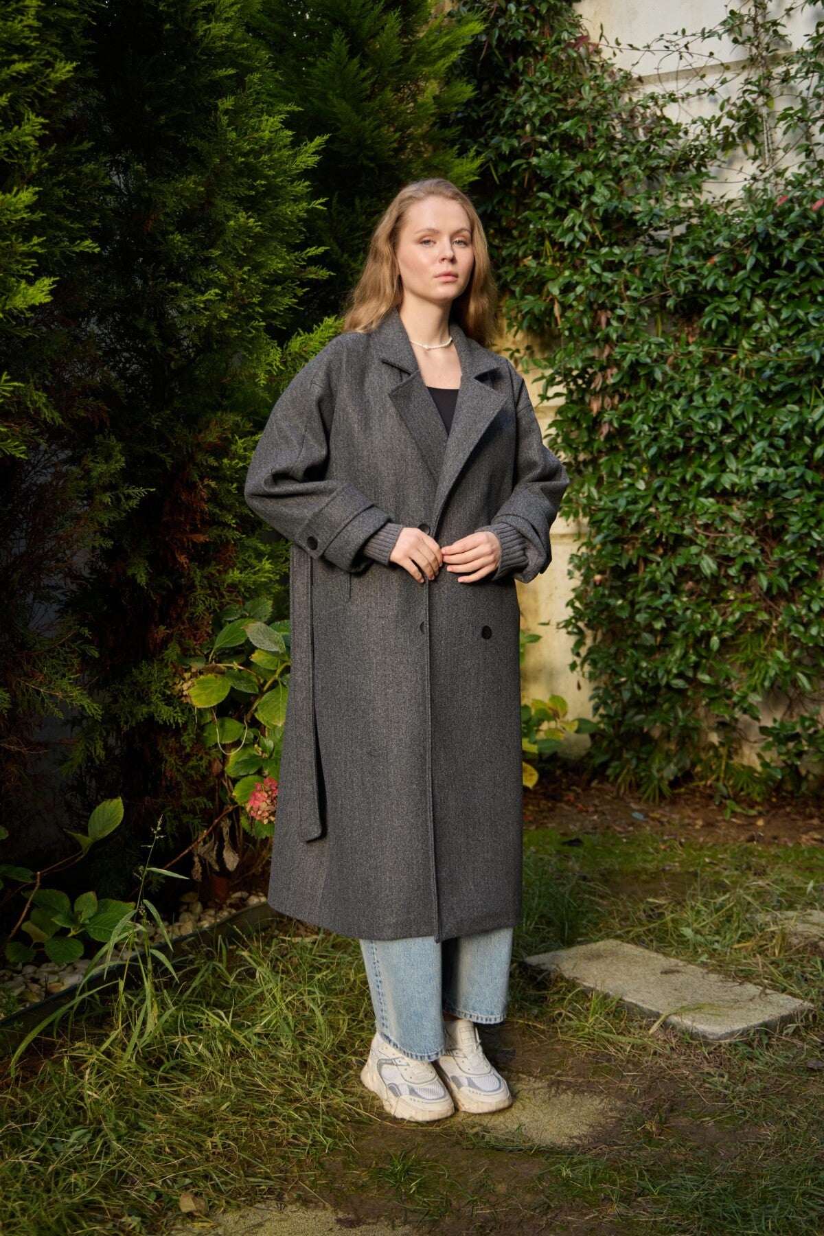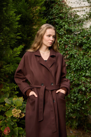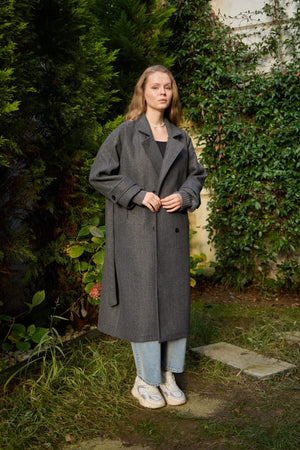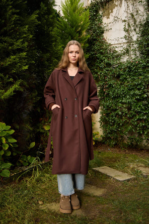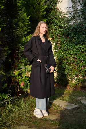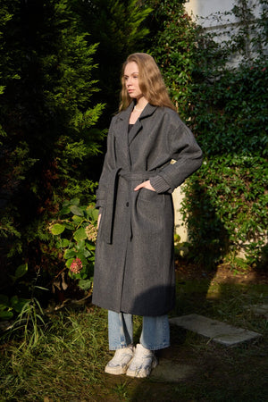 A premium winter coat crafted from high-quality imported cashmere fabric, featuring stylish knit sleeves for a modern, elevated look.