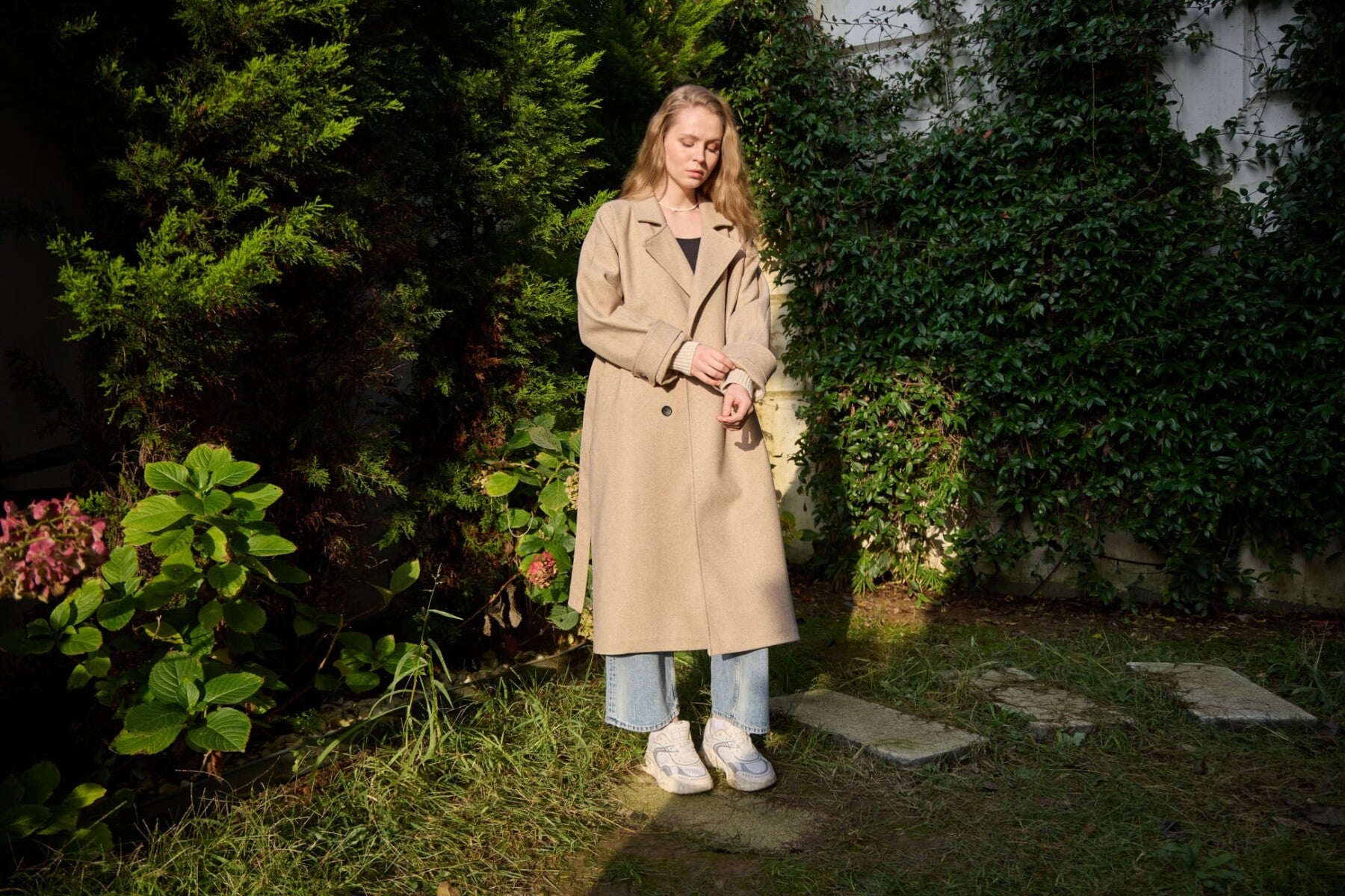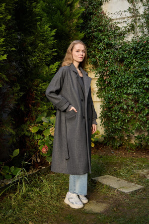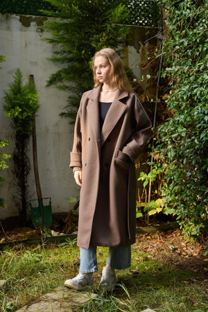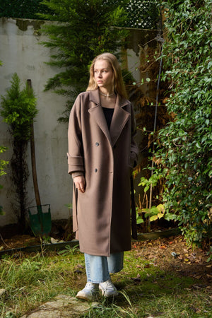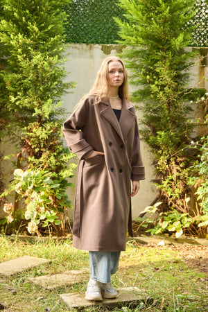Premium Cashmere Coat with Knit Sleeves JK014