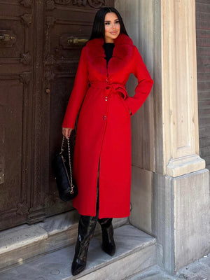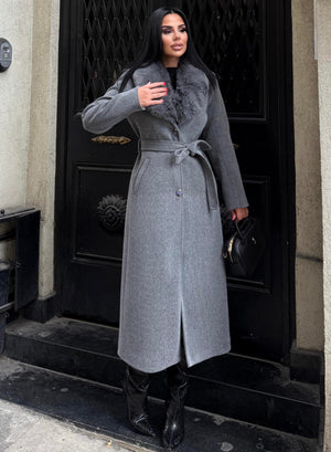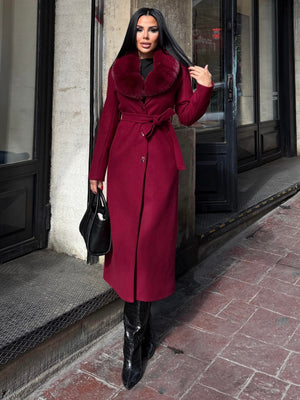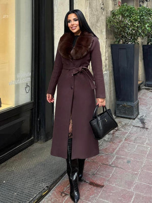 A luxurious winter coat crafted from premium wool fabric with a soft, detachable fur collar for versatile styling. Fully lined for comfort and warmth, it combines elegance and practicality with a flattering feminine silhouette. Perfect for chic winter looks that never go out of style.