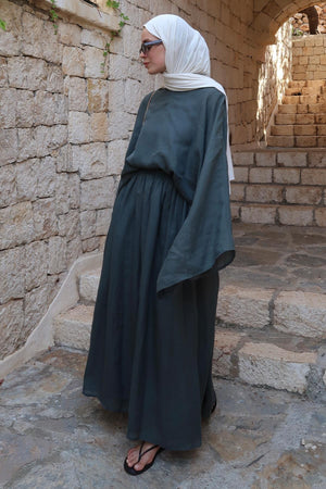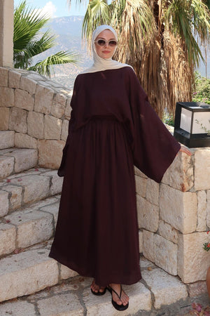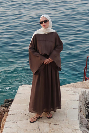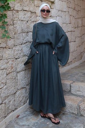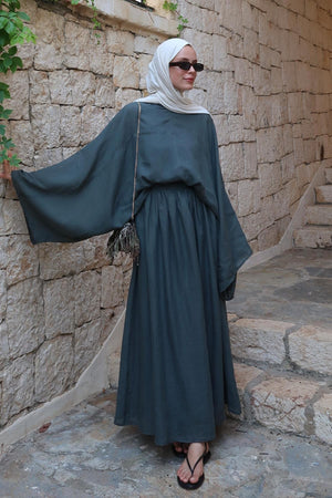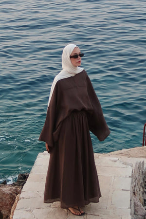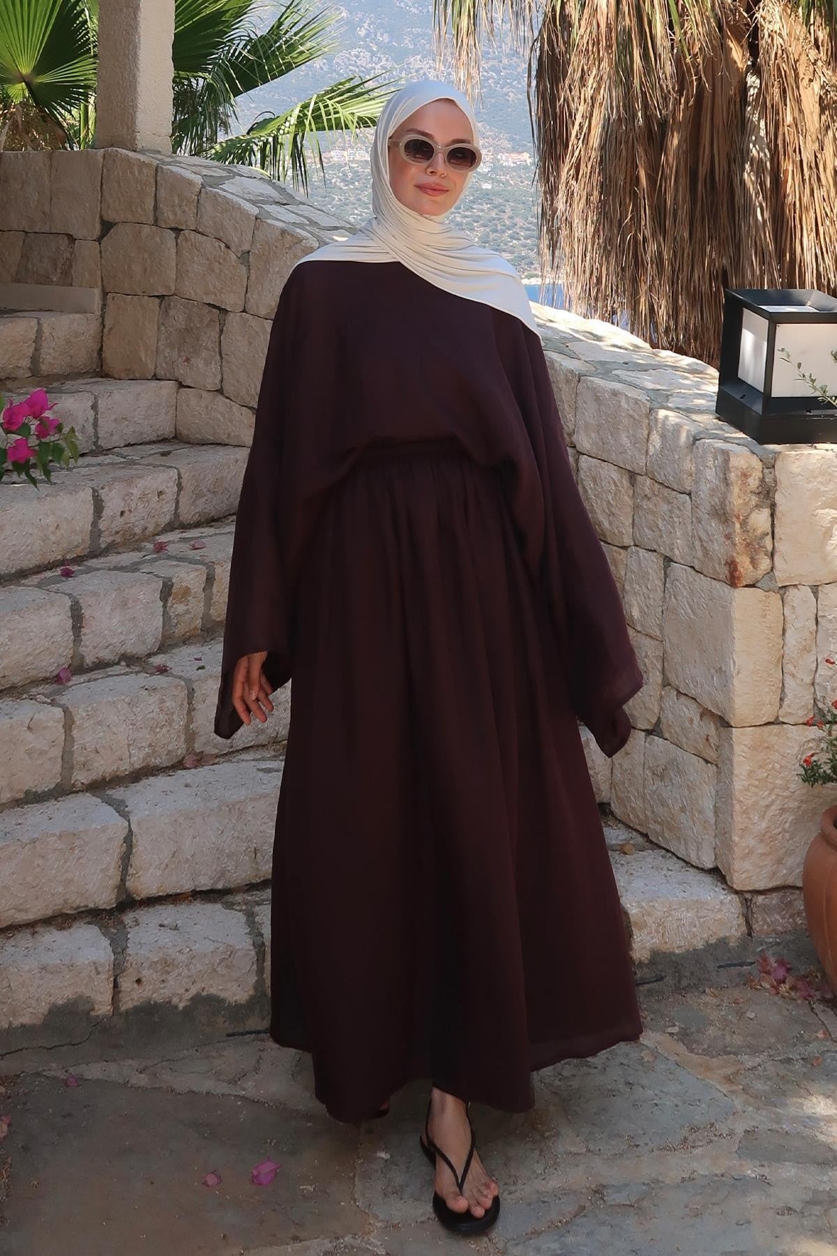 Designed with a relaxed, flowing fit, the set features a fully lined skirt for added comfort and an elastic waistband for a flexible and flattering silhouette.