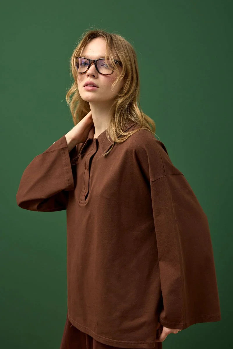 طقم مميز يجمع بين الراحة والأناقة، بلون بني قهوة جذاب.