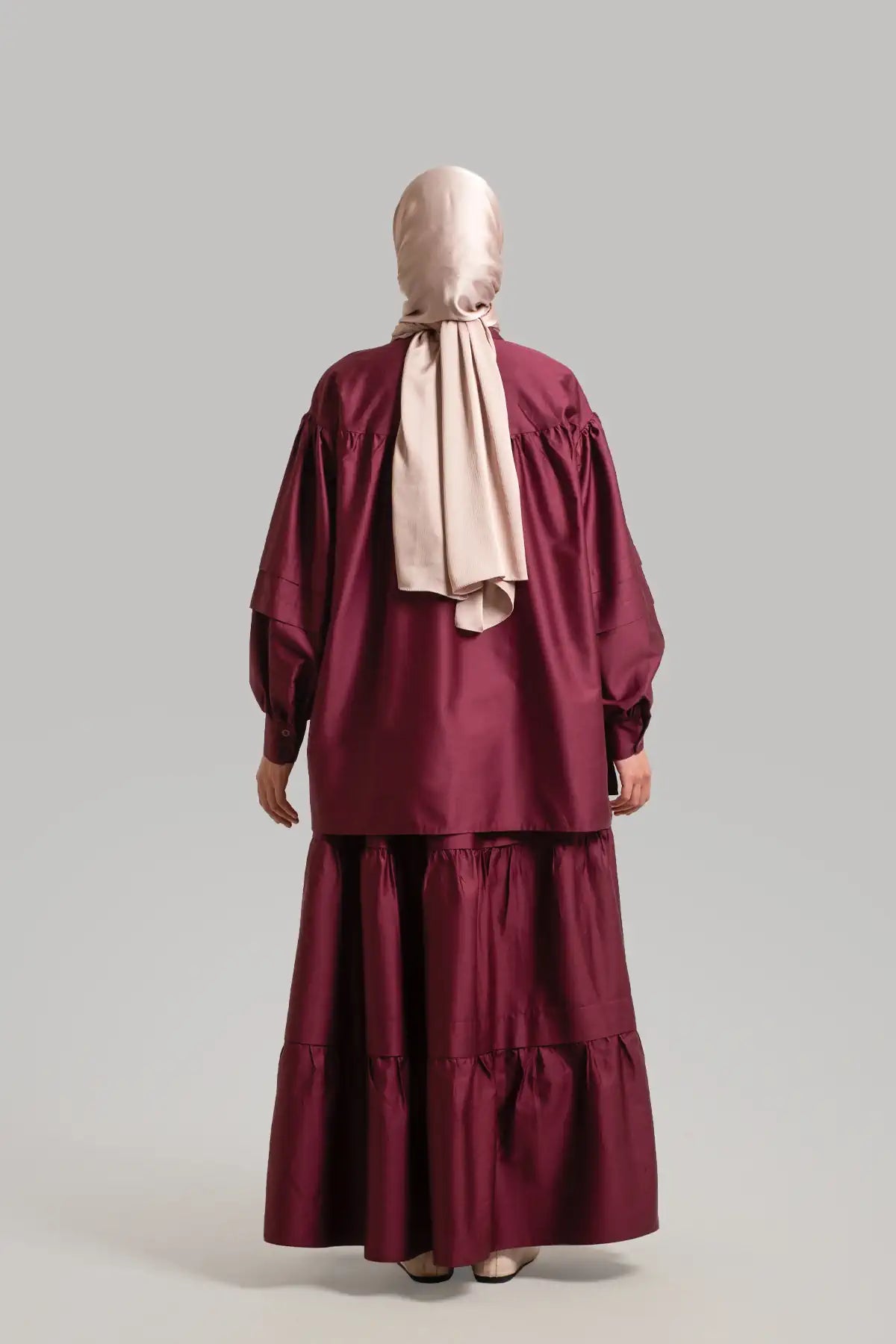 Designed with a flowy, modest silhouette and a stretchy elastic waistband, it ensures ease of movement and a graceful fit.