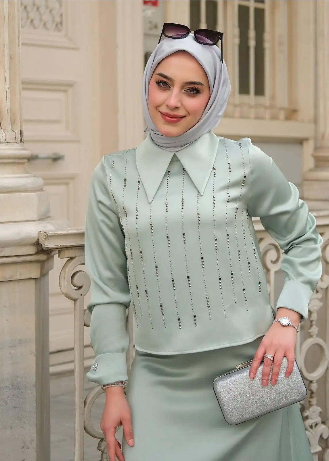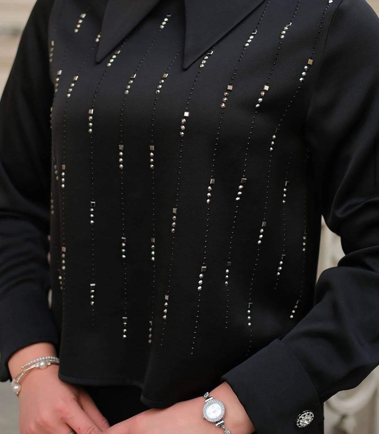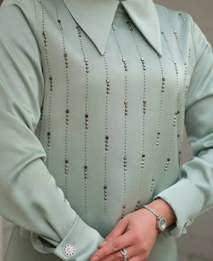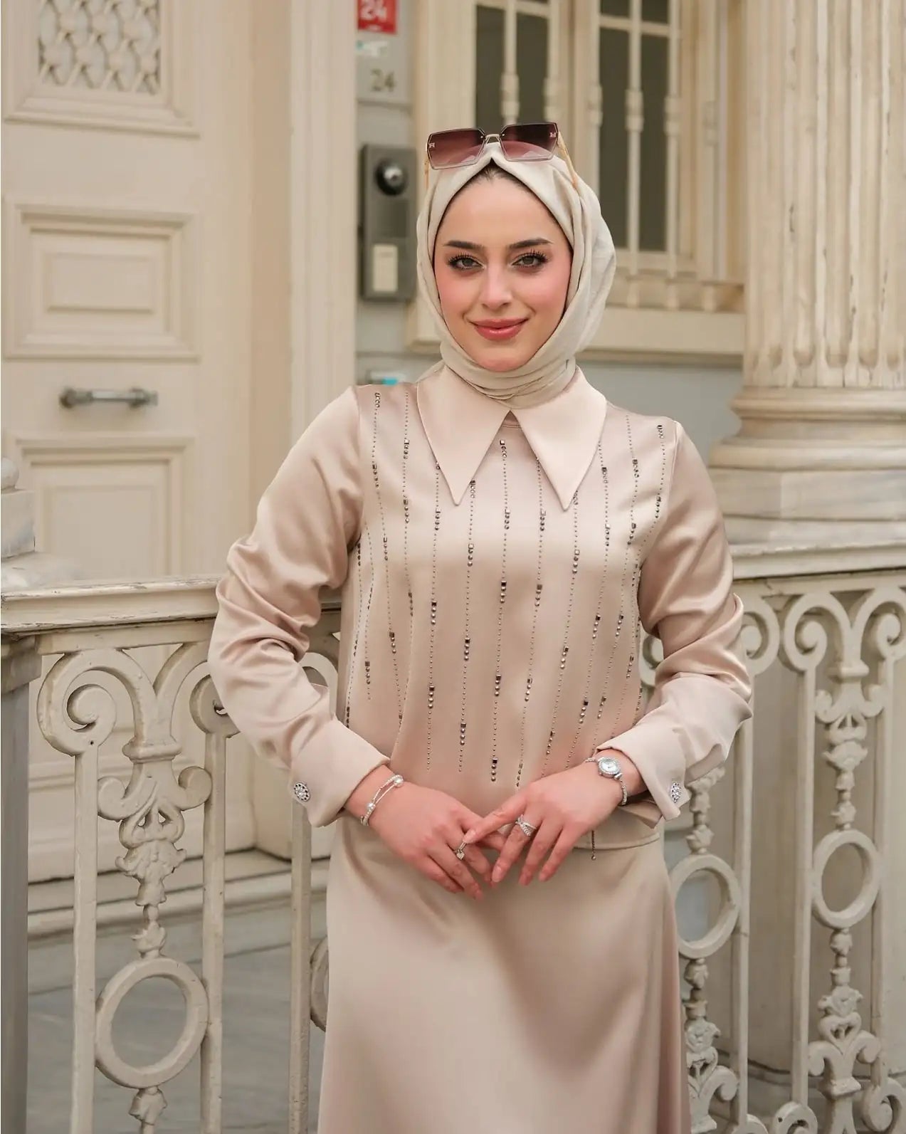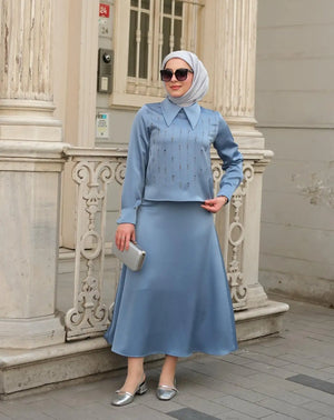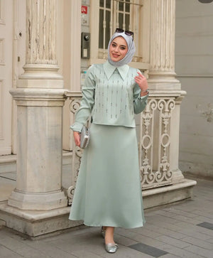 طقم تنورة – من قماش فاخر مع تزيين بالأحجار الأمامية (SK004)