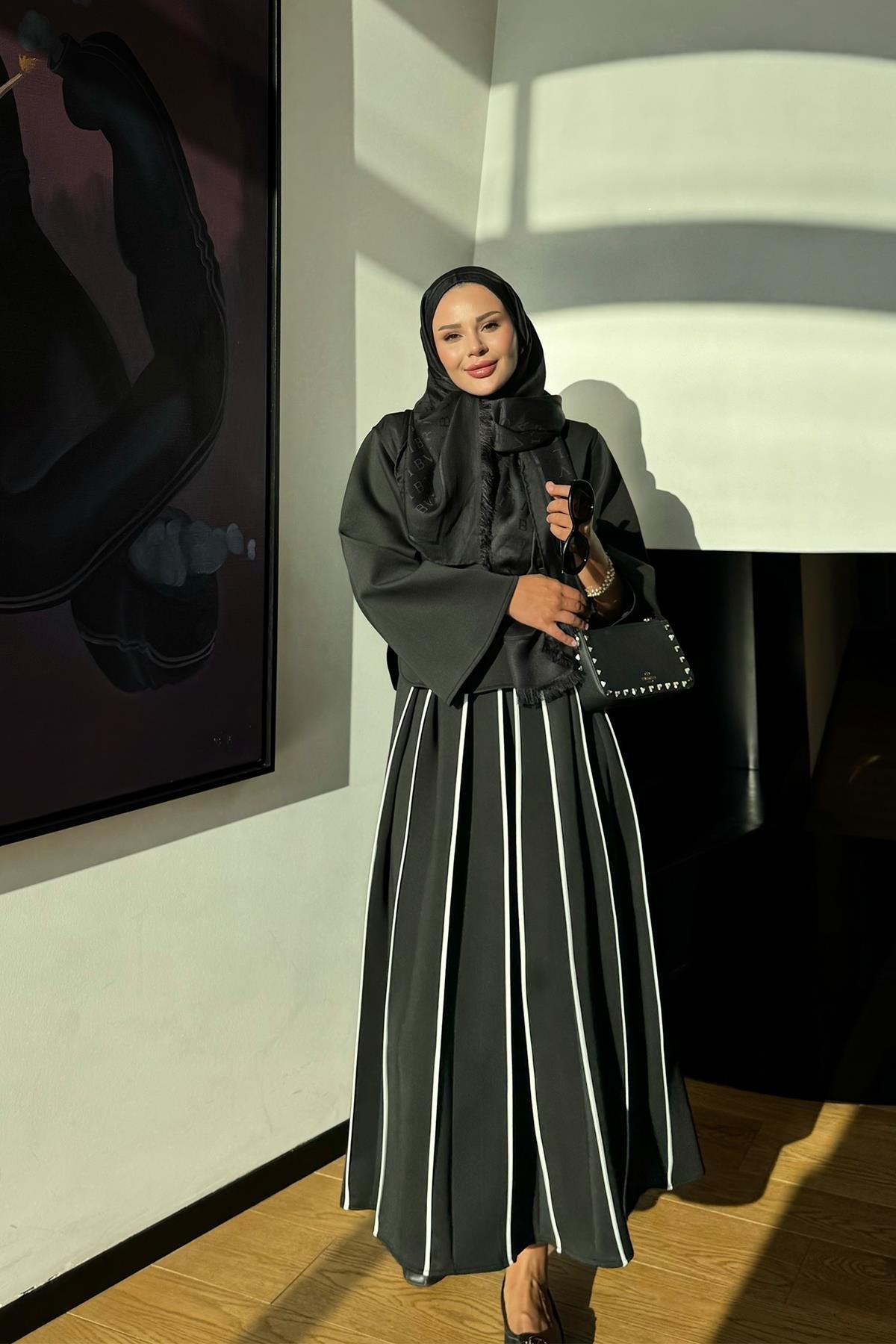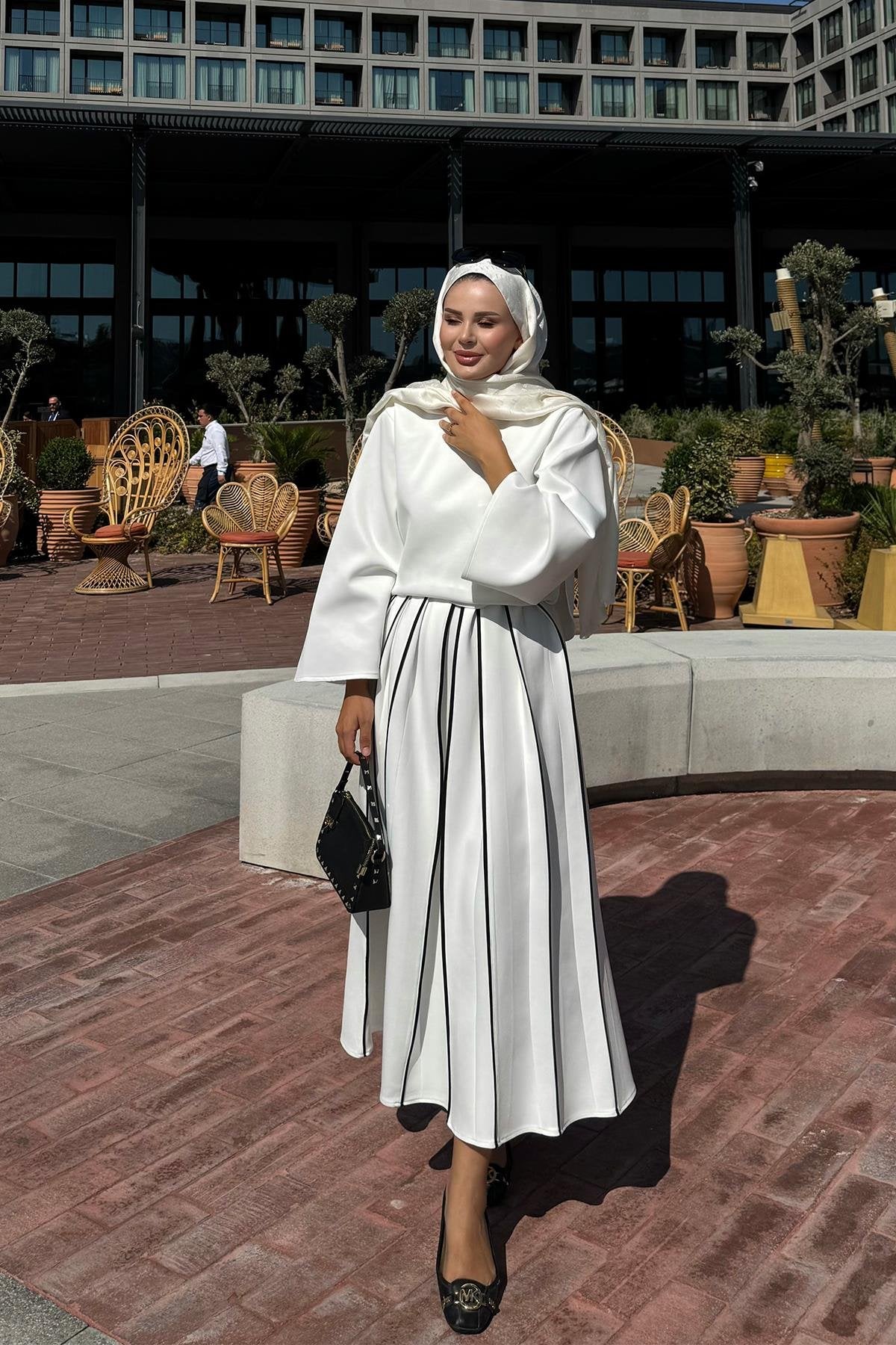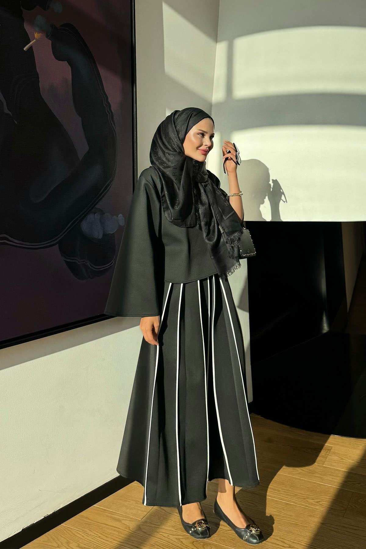طقم تنورة بقماش سكوبا مع تفاصيل الشريط الجانبي (SK005)