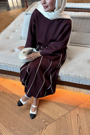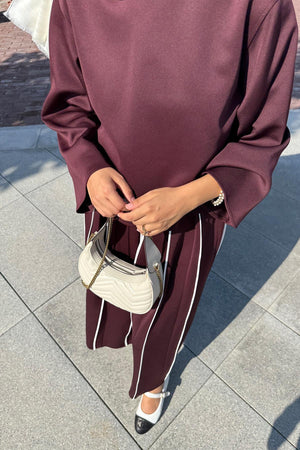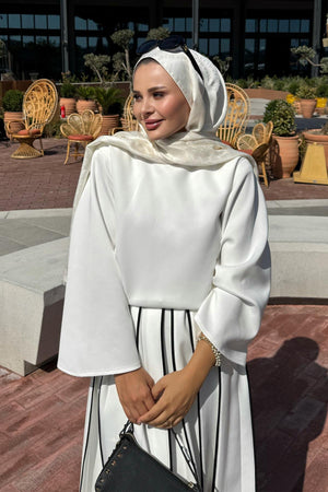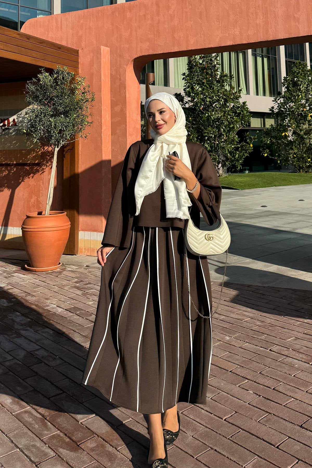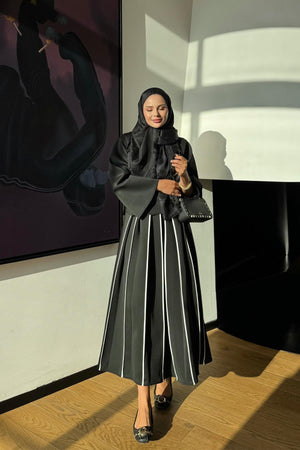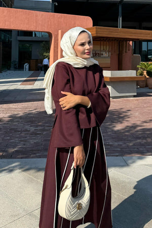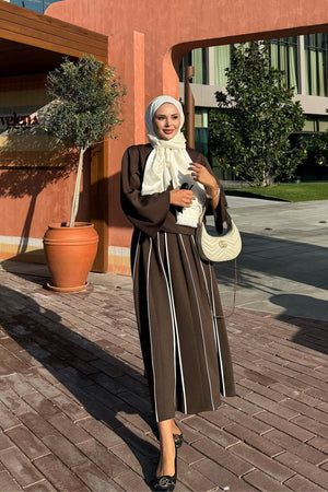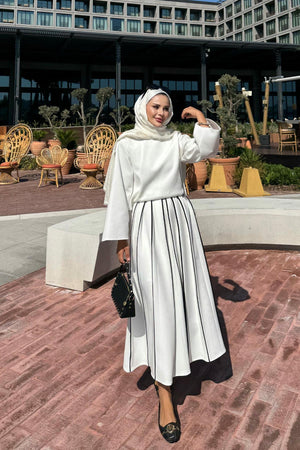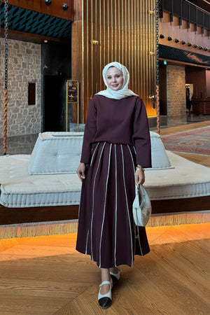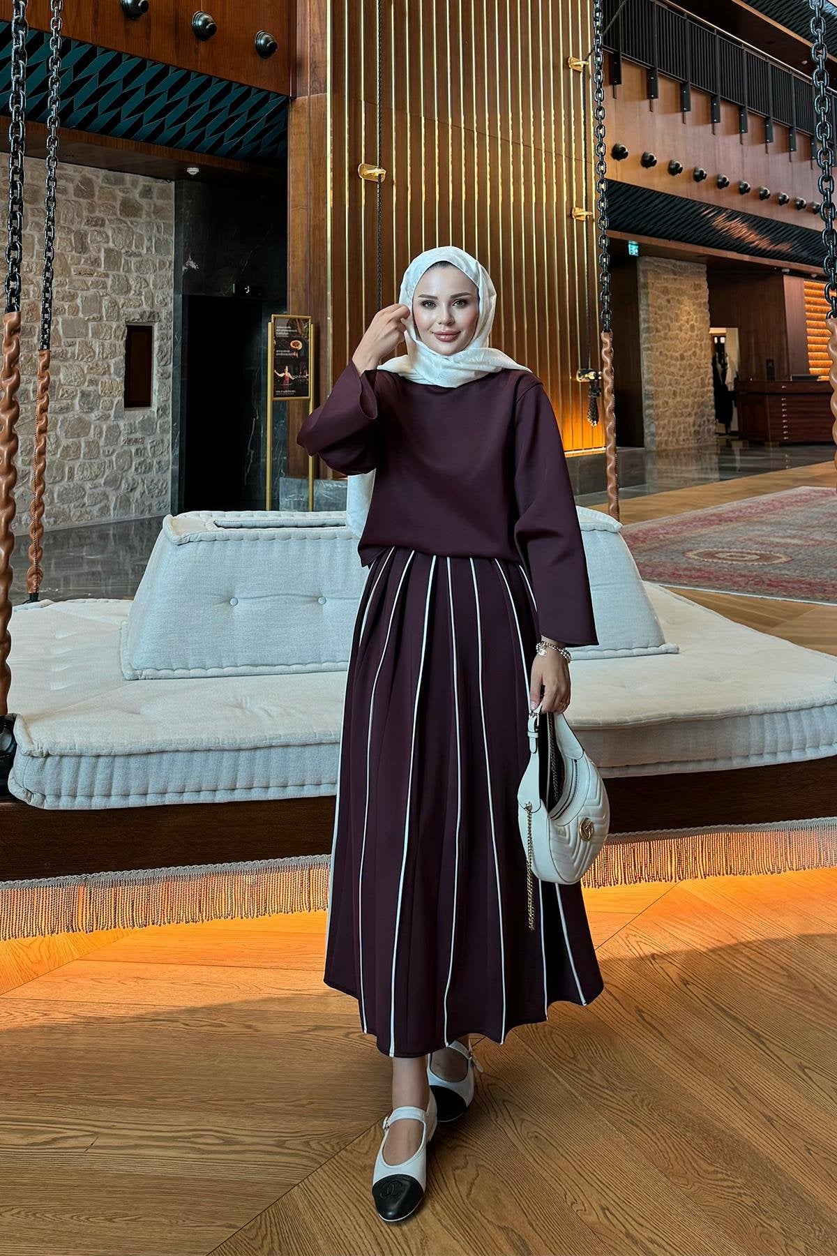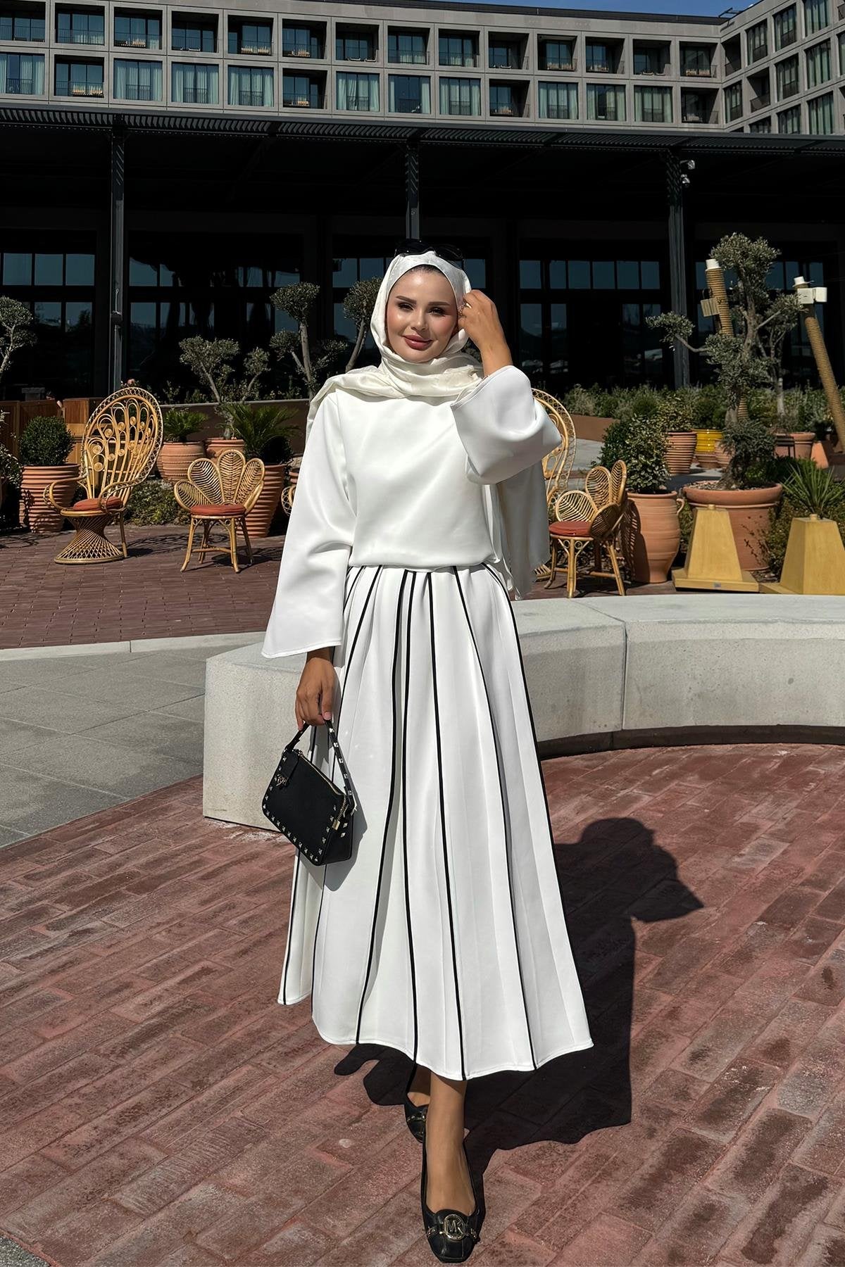طقم تنورة بقماش سكوبا مع تفاصيل الشريط الجانبي (SK005)