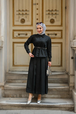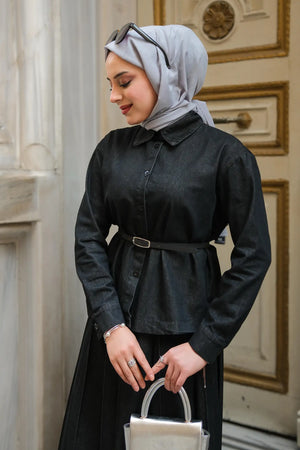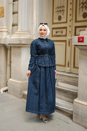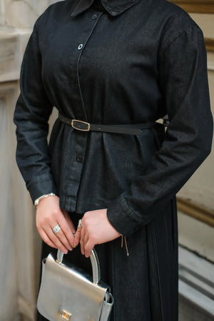 طقم تنورة جينز سلاي – من قماش فاخر مع حزام جلدي (SK003)