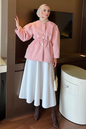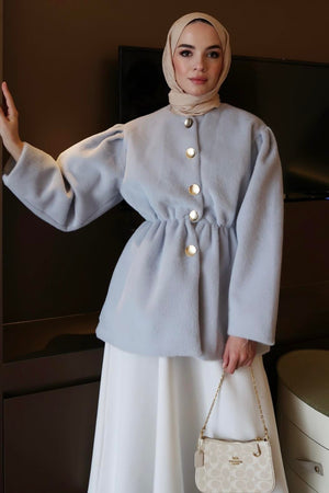 A soft and cozy coat designed with a drawstring waist for adjustable fit and added comfort.