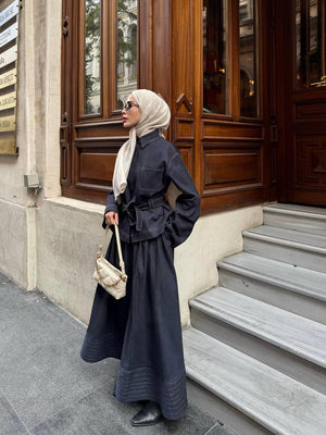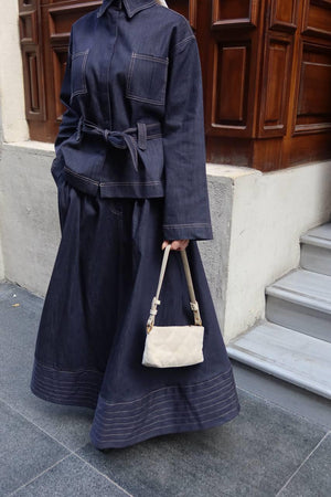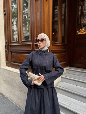 Elevate your look with this coordinated jeans set featuring a top and skirt, perfect for both everyday wear and special occasions. Its sleek design ensures comfort while giving you a modern, standout style.