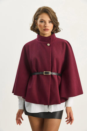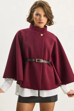 بونشو صوف بحزام وتفاصيل أزرار ذهبية – TOP001